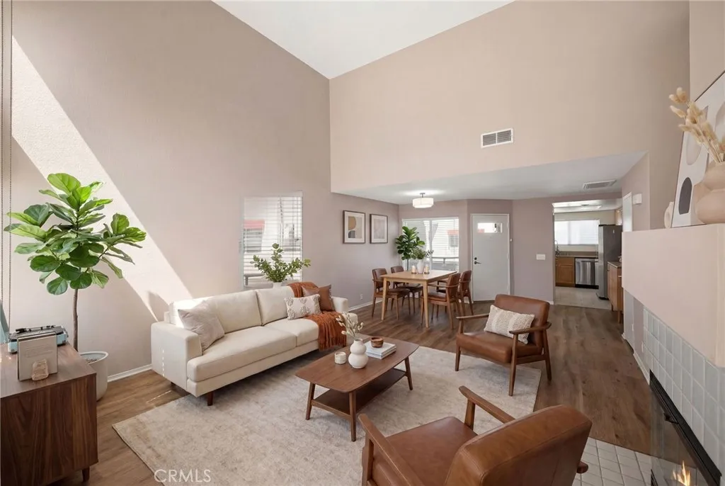 Welcome to this beautifully upgraded upstairs condo in the highly sought after Hillcrest Villages community of Mission Viejo. Located at 26943 Diamond, this light-filled 2-bedroom, 2-bathroom home features soaring cathedral ceilings that create an open, airy living space with an abundance of natural light. The newer kitchen includes modern finishes, updated cabinetry and countertops, perfect for both everyday living and entertaining, and an interior laundry closet adds convenience. A bright primary suite offers comfort and privacy, while the second bedroom is ideal for guests, a home office, or growing families. Additional highlights include a private one-car garage, a second vehicle parking spot, and well-designed living areas that maximize both style and functionality. Residents of Hillcrest Villages enjoy access to resort-style amenities including a pool, relaxing spa, and inviting BBQ area. Ideally situated, this home is just minutes from outdoor recreation at Oso Creek Trail offering scenic walking paths and green spaces. For shopping and dining, youll find convenient access to Shops at Mission Viejo and Kaleidoscope Center, featuring popular retailers, restaurants, and entertainment options. Commuters will appreciate the proximity to major routes including the I-5 and 241 Toll Road. Come quick!