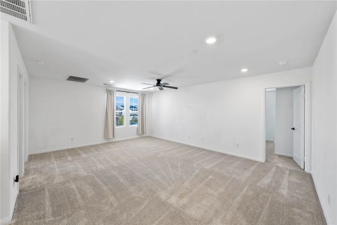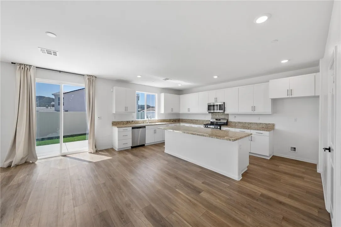 Welcome to this beautifully maintained, like-new home in Hemet, built in 2023 with OWNED Solar. This home was thoughtfully designed for modern living. This spacious residence features 4 bedrooms, 3 FULL bathrooms, and a versatile upstairs loftperfect for a home office, media room, or additional living space. The main level showcases stylish vinyl plank flooring and an open-concept layout filled with natural light. The kitchen is a standout, complete with granite countertops, white cabinetry, and a generously sized walk-in pantryperfect for everyday living and entertaining. Also downstairs is a bedroom and full bathroom. Perfect for quest, or work spaces. Upstairs, youll find 3 additional bedrooms, and 2 full bathrooms, the LOFT area, and a convenient laundry room. Each bedroom offers ample space, making this home ideal for families, guests, or flexible living needs. Step outside to a low-maintenance backyard featuring newer artificial turf and durable vinyl fencing, providing a private and clean outdoor space to relax or entertain. Located within a desirable community, residents enjoy access to resort-style amenities including a POOL/SPA, clubhouse, parks, playgrounds, BBQ areas, and scenic walking trails, and so much more! If youre searching for a move-in ready, newer construction home with modern finishes, a flexible loft space, and community perks, this is the one youve been waiting for!