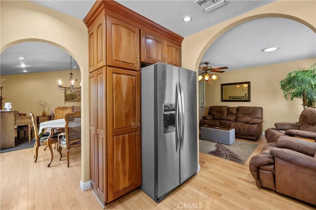 Wow first time on the market in over 40 years, this inviting single-story home sits at the top of the highly desirable Valencia Monteverde community. Set on a generous lot, this 3-bedroom, 2-bathroom residence showcases true pride of ownership and a warm, welcoming feel from the moment you arrive. A formal entry opens to a spacious living room, flowing seamlessly into a well-sized dining areaideal for both everyday living and entertaining. The thoughtfully designed kitchen features granite countertops, rich cherry wood cabinetry, and stainless steel appliances, all complemented by a picturesque window overlooking the serene backyard. Just off the kitchen, a comfortable family room provides additional space to gather and relax. Inside, youll appreciate the blend of tile flooring in the entry, hardwood floors in the family room, and plush carpeting in the bedrooms, creating both style and comfort throughout. All three bedrooms are conveniently located on the main level, along with two tastefully updated bathrooms. Step outside to a truly special park-like backyard, complete with a tranquil pond, mature landscaping, and potential RV storage along the side yard. Enjoy peaceful peekaboo views and a sense of seclusion thats hard to find, making this outdoor space perfect for entertaining, gardening, or simply unwinding. Ideally located just minutes from top-rated schools, parks, shopping, and dining, this home offers the best of both worldsconvenience without sacrificing tranquility. A rare opportunity to own a lovingly cared-for home in one of Valencias most sought-after neighbo