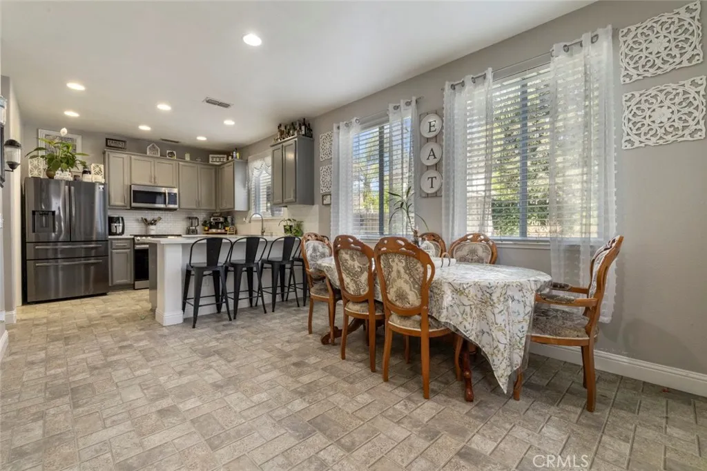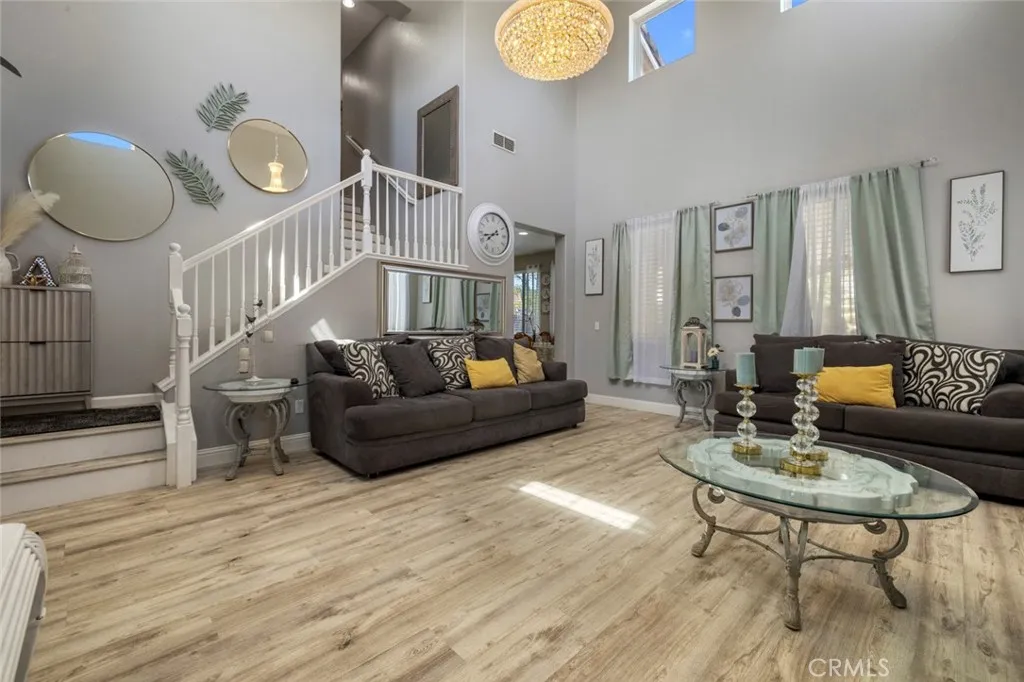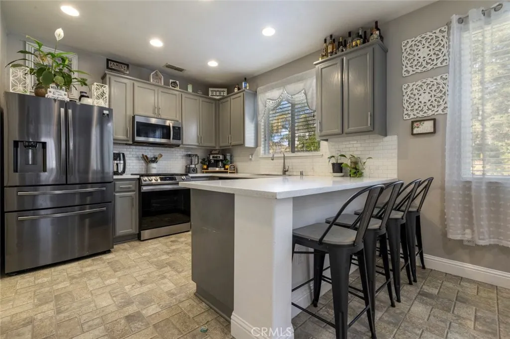 Experience modern living in this charming 1,553 sq ft, 3 bedroom, 2.5 bath home. The interior boasts significant upgrades, starting with a completely remodeled, chef-ready kitchen, new countertops, backsplash. Built in desk area in kitchen. Downstairs laundry room. New flooring that flows seamlessly across living room downstairs level to stairs. The inviting living room is graced by a striking chandelier, creating a refined focal point perfect for hosting or quiet evenings. Outside, the exceptional entertaining space continues with a huge, custom-designed patio in the backyard with built in surround sound speakersyour private oasis for large parties and year-round enjoyment. This house is a must-see for those seeking comfort and style.