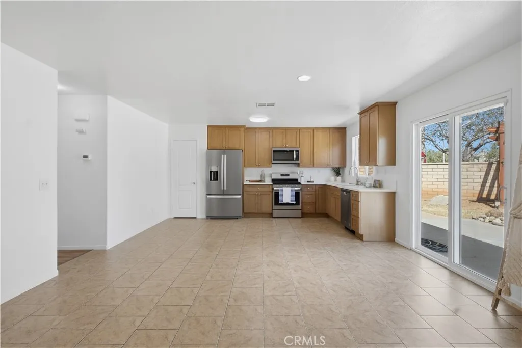 Beautifully updated single-story corner home in Lancaster! This move-in ready 4 bedroom, 2 bathroom home with a 2 car garage offers added privacy with only one neighboring property. Features include new flooring, fresh interior paint, and a new upgraded kitchen with new countertops, also extended into the bathrooms for a cohesive, modern look. The open floor plan seamlessly connects the living room, dining area, and kitchen, ideal for everyday living and entertaining. A split floor plan provides added privacy between the primary suite and secondary bedrooms. Home includes a dedicated laundry room with washer and dryer, plus all kitchen appliances are included, making this truly move-in ready. Enjoy a low-maintenance hardscape yard and a detached patio cover, ideal for outdoor relaxation. Conveniently located near major employers, Lancaster National Soccer Center, parks, and schools. Purchase plan solar to be assumed at $109.71/month. Great opportunity for first-time buyers or anyone seeking a turnkey home!