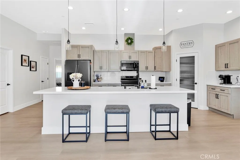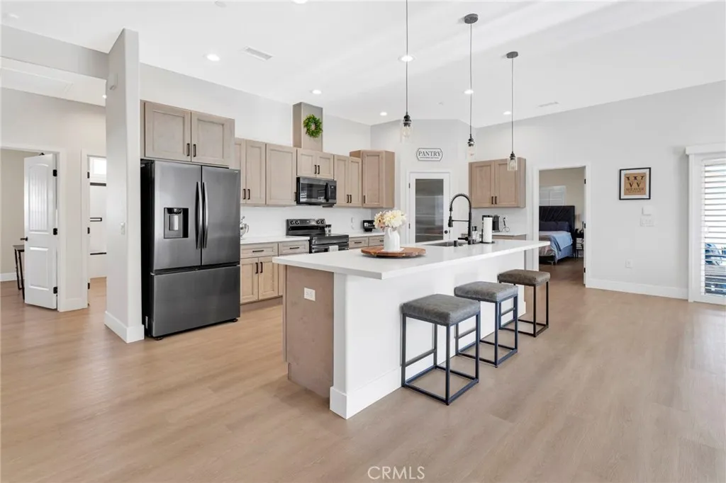 This newly built beautiful home by DCM Designs is back on the market! Sellers are being relocated and have only been in the house for five months. This is your gain! This exquisite home offers 4 bedrooms, 2 baths and 2140 sq feet of open living. An all electric set up with paid solar panels ensures low energy billing and eco-friendly living. The interior is both functional and stylish with 10 foot ceilings, vinyl flooring, quartz counter tops, and stainless steel appliances for that high end feel. There is the convenience of having indoor laundry and a finished, spacious two car garage for your cars and toys. A covered back yard patio is great for the afternoons you want to entertain in your back yard. As a resident of Silver Lakes, you'll have access to a 27-hole Championship golf course, beautiful beaches, fishing, parks, tennis, bocce ball, swimming pool, restaurants, etc. This is your chance to be a part of an excellent community offering so many opportunities.