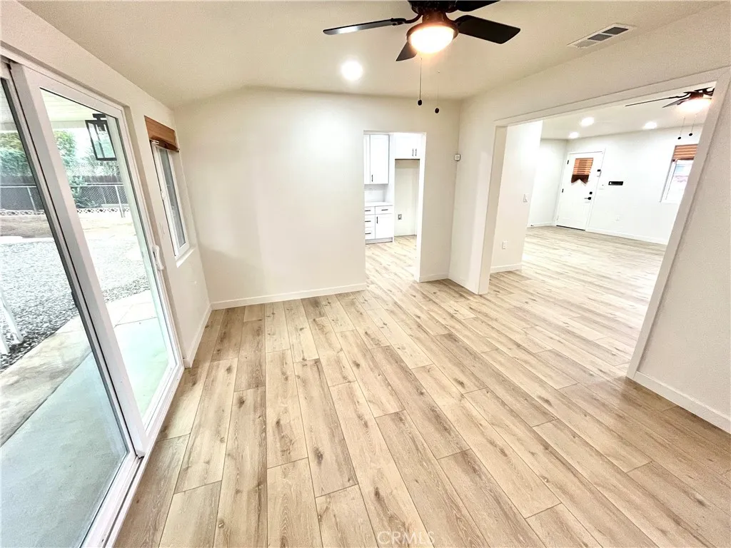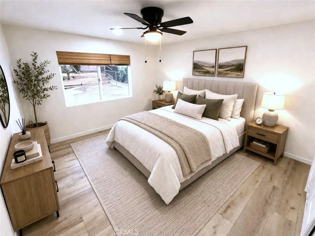 Welcome to this beautifully reimagined 2-bedroom, 1-bath home, in the sought-after 55+ community of Sun City/Menifee; offering the perfect blend of modern style, comfort, and value. Renovated from the studs up, this home delivers the rare appeal of a truly move-in-ready property with a fresh, never-lived-in since the renovations were completed. Inside, the open-concept floor plan creates a bright and inviting atmosphere. The all-new kitchen is a standout, featuring white shaker-style cabinetry, a pantry, quartz countertops, a designer backsplash, brand-new stainless steel appliances, and a professional-style slide-in electric stove. A gas valve hookup is also available in the kitchen for added flexibility. The living area is warm and welcoming, highlighted by a modern tiled fireplace and a light-filled bonus room that offers added space for relaxing, entertaining, or a home office. The bathroom has been completely remodeled with a stunning walk-in tiled shower designed for both beauty and convenience. Additional upgrades include new dual-pane windows, new doors, premium flooring, designer lighting, updated electrical and plumbing fixtures, fresh texture, fresh paint, and numerous other improvements throughout. Step outside to a low-maintenance backyard with a covered patio, ideal for morning coffee or enjoying cool evenings with friends and family. Enjoy low-cost HOA living for only $35 per month, with amenities that include two swimming pools, a spa, fitness center, billiards, table tennis, lawn bowling, shuffleboard, and horseshoe courts. Conveniently located near the 215