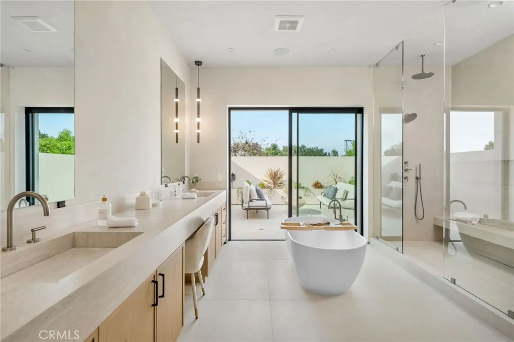 Newly constructed organic modern estate located in a quiet, highly desirable pocket of Sherman Oaks. This 5-bedroom, 5.5-bathroom residence includes a fully attached ADU, offering elevated flexibility for guests, extended family, or a private office. Designed with a refined eye, the home showcases bespoke finishes, rich natural materials, and sophisticated architectural details throughout, creating a warm yet elevated living experience. The open-concept floor plan features expansive living and dining areas that flow effortlessly into a designer chefs kitchen, complete with top-of-the-line appliances, custom cabinetry, a walk-in pantry, and an oversized statement island ideal for both everyday living and entertaining. Floor-to-ceiling glass doors flood the interiors with natural light and create seamless indoor-outdoor integration. A fully integrated smart home system enhances convenience and security, allowing for effortless control of lighting, climate, audio, and surveillance. Upstairs and main-level living spaces are thoughtfully designed for comfort and privacy, with generously sized en-suite bedrooms and a luxurious primary suite offering a spa-inspired bathroom and spacious walk-in closet. The private backyard is a true resort-style retreat, featuring a sparkling pool and spa, multiple lounging areas, and lush surroundings perfect for relaxing or hosting gatherings. Ideally situated just moments from Ventura Boulevards premier shopping, dining, and entertainment, this exceptional residence offers the ultimate blend of modern luxury, functionality, and California indoo
