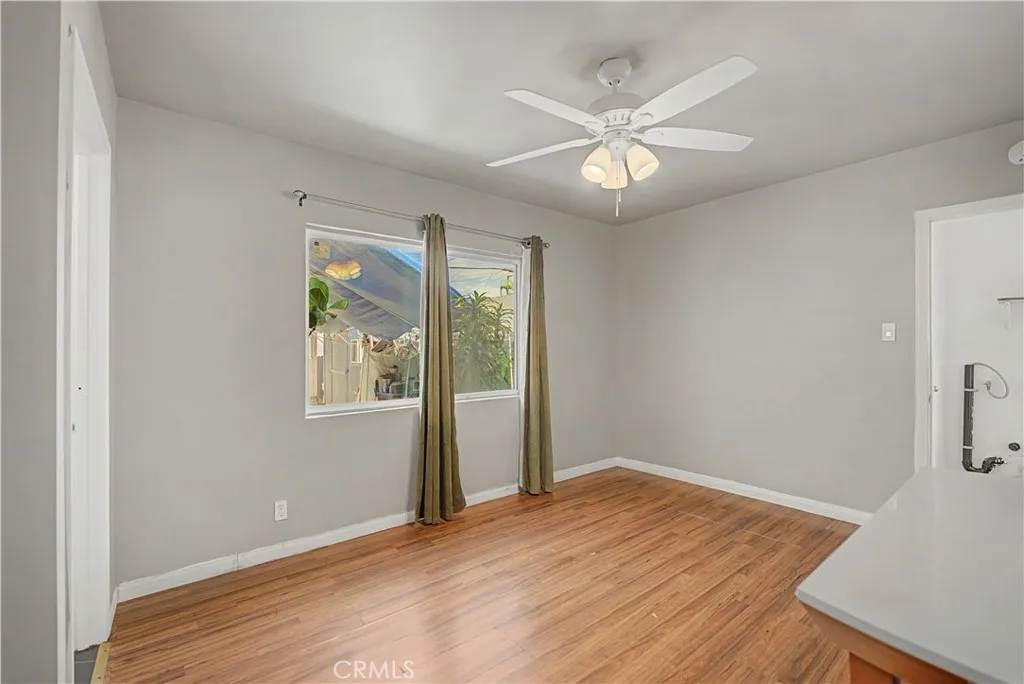 Charming single-story home featuring 3 physical bedrooms and 2 bathroom, offering a bright and functional layout. The interior showcases a spacious living area with plenty of natural light, updated flooring, and a clean kitchen with ample cabinetry and workspace. Bedrooms are well-sized, and the bathroom has been refreshed for comfortable everyday living. The property sits on a generously sized lot with a long driveway and detached garage, providing plenty of parking and potential for expansion or ADU. The backyard offers a large covered patio area, perfect for outdoor gatherings, entertaining, or additional use space. Conveniently located near major streets, shopping, and schools, this home is a great opportunity for both homeowners and investors.