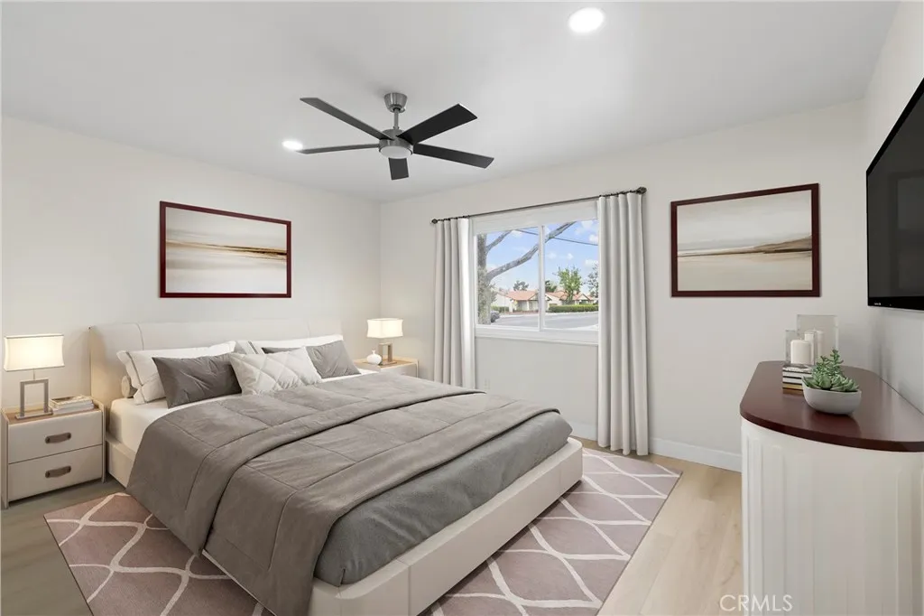 Welcome home to 501 Palmer Drive. A thoroughly renovated 2 bedroom 2 bathroom home that offers comfortable and modern single level living in the heart of sunny, Hemet California. This turn key property boasts an all new kitchen showcasing stylish countertops, tasteful cabinetry, and stainless steel appliances. Both of the bathrooms have been completely remodeled featuring modern fixtures, cabinets, and finishes to go along with the rest of the home. The open floor plan is enhanced by superb natural lighting, and all new durable modern flooring throughout. The interior and exterior have been entirely painted giving the home a modern, bright and cheery feel. Moving to the outside you will find fresh low maintenance landscaping that is ready for your personal touch. Important upgrades to mention include, a fully OWNED solar system installed in 2023 that powers the home entirely. An upgraded electrical panel installed in 2023. New slider doors and windows installed, offering modern energy efficiency. A full brand new HVAC system installed recently in 2026, along with new exterior doors, and upgrades to the plumbing access were also made to the property. This home is truly all brand new and ready to go for years to come, also it's worth the mention that this home has fantastic neighbors! Located close in proximity to the community clubhouse/pool, as well as close by to Echo Hills golf course. Property located in 55+ community.