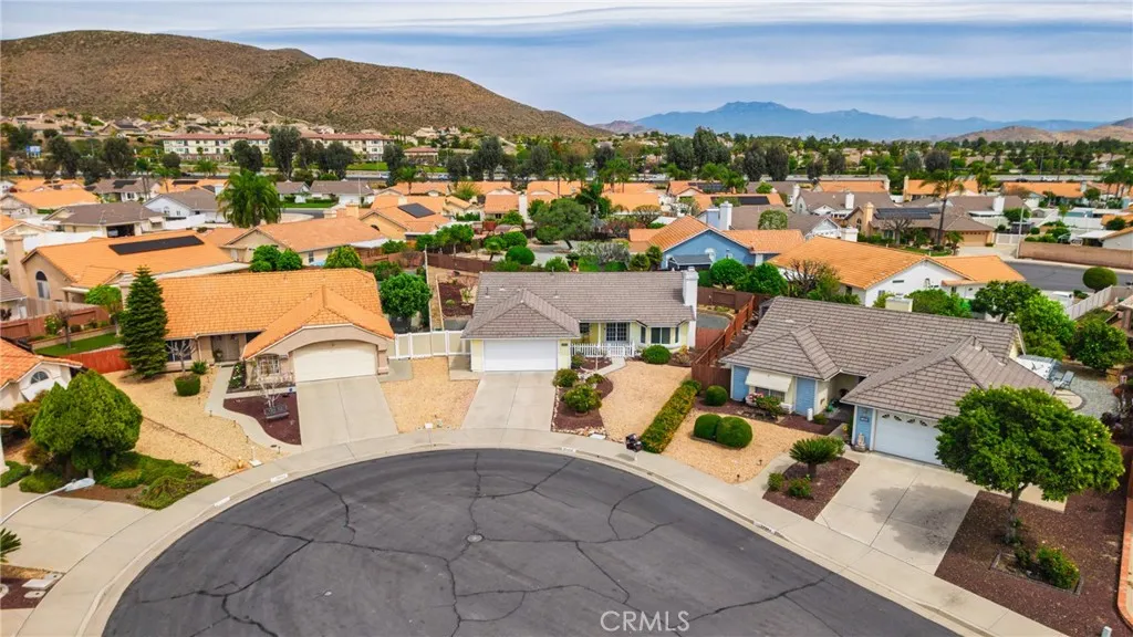 Welcome to this beautifully maintained single-story cul-de-sac home in the desirable Serenade 55+ community in Menifee. This 3 bedroom, 2 bathroom home offers 1,550 sq ft of comfortable living, featuring updated flooring throughout and a very well cared for interior that truly shows pride of ownership. The spacious layout includes formal living and dining areas with a cozy fireplace, plus an upgraded kitchen with granite countertops, island, pantry, and plenty of cabinet space. The primary suite features a double door entry, walk-in closet, and a custom tile walk-in shower. Both bathrooms have been tastefully updated with custom tile finishes. Additional upgrades include a whole house fan, newer dual pane windows, newer water heater, and a newer heating and air conditioning system. Indoor laundry adds everyday convenience. Step outside to a huge backyard with a park-like setting, updated with turf, mature fruit trees including apricot, peach, lemon, and plum, and a covered patio perfect for relaxing in the afternoon shade. The oversized 2+ car garage features epoxy flooring, with possible RV parking on the side. Sale includes all appliances including gas oven, microwave, dishwasher, refrigerator, washer, and dryer. The mounted 65 TV, sectional sofa, and electric fireplace heater are negotiable. Located just minutes from gyms, Starbucks, gas stations, convenience stores, shopping, medical centers, and with quick access to the 215 and 15 freeways, convenience is truly unmatched. No HOA and low property taxes (CC&Rs apply). This is a must see, come experience it for yourself,