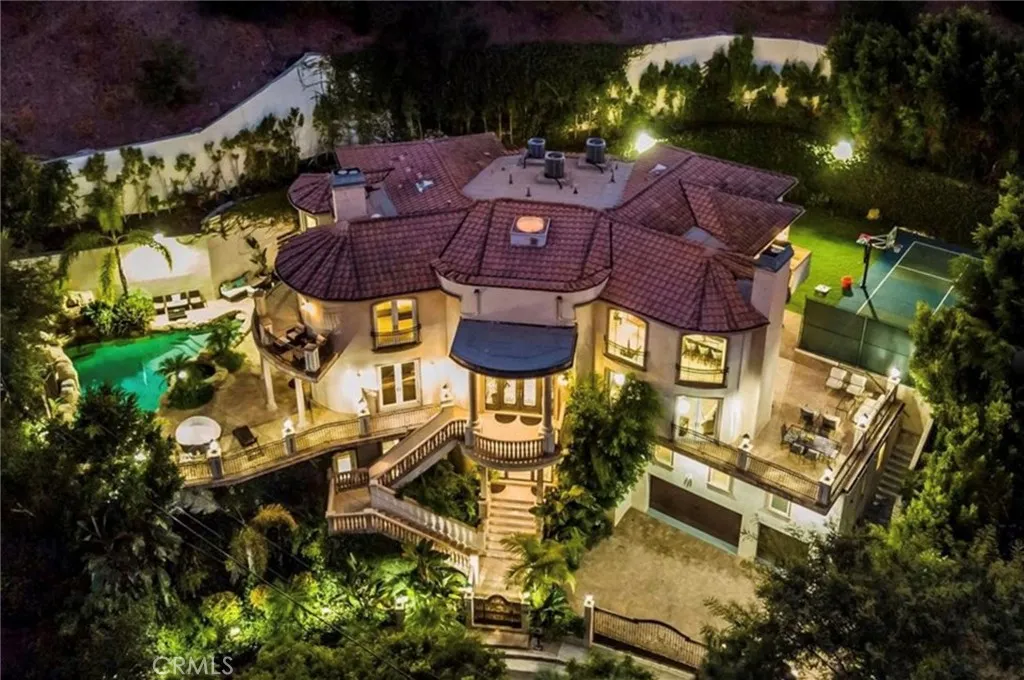 Location, Location, Location! Spectacular Mediterranean Resort-style estate with private gate is offered for immediate lease, fully furnished luxury furnishings with everything you want and need. Tucked away on a very quiet alcove off N Beverly just up from the Beverly Hills Hotel, Franklin Canyon Reservoir, Rodeo Dr. and Sunset Blvd. Walk to the beautiful Coldwater Canyon park. This Extraordinary Estate offers the ultimate blend of security, privacy, luxury, and resort-style living. Spanning approx. 6,800 sq. ft. across 3 levels, the home features 7 en-suite bedrooms and 7.5 baths, each with private patios or balconies that welcome natural light with pool and garden views. The grand primary en-suite includes dual oversized closets, a spa-like bath with soaking tub overlooking the resort-style grounds. Designed for both entertaining and relaxation, the estate boasts a sports court for pickle ball fun or sharpening your hoops or tennis skills, dry sauna, pool with spa and waterfall, outdoor kitchen, billiards room, home theater, and bar. The chef's kitchen and large dining area is complemented by a dedicated wine/buffet service room/and bar, ideal for gatherings. Additional highlights include a 3-car garage, gated motor court, and lush landscaped grounds, walled and private back yard.