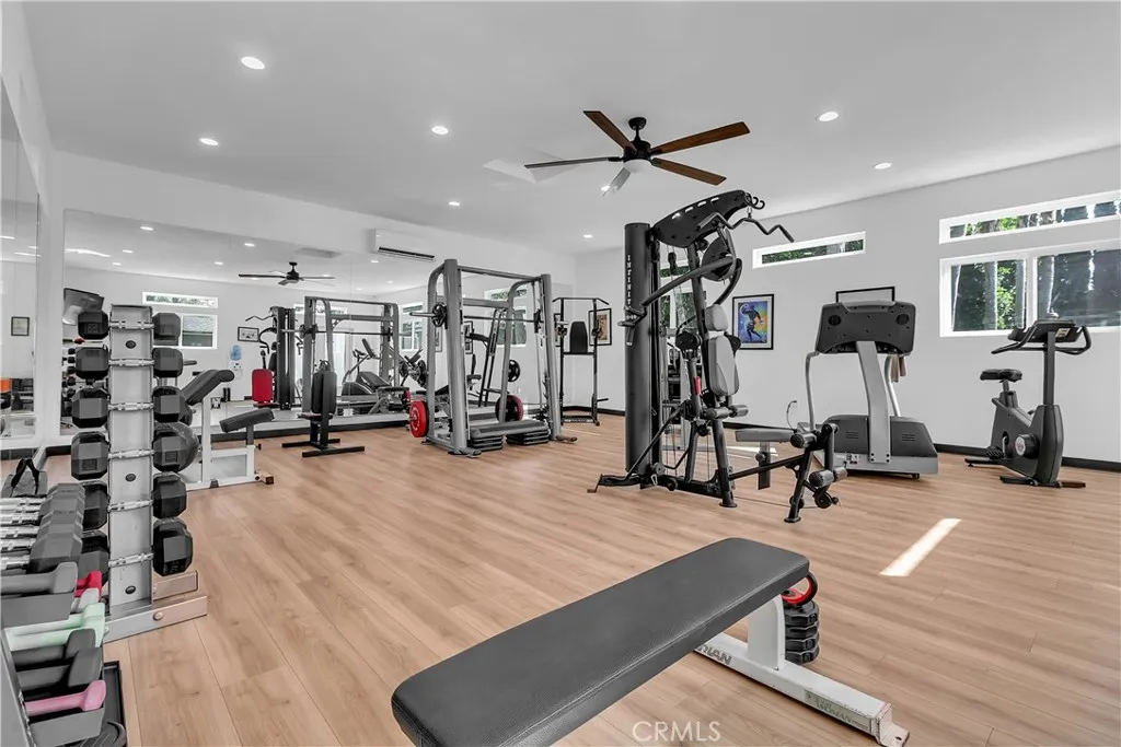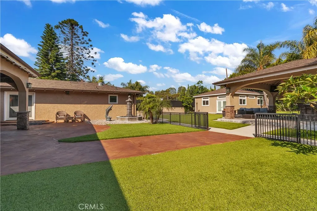 Welcome to this exceptional Fullerton property offering a rare blend of space, functionality, and resort-style living. Situated on a beautifully landscaped lot with mature greenery and enhanced privacy, this home is designed for both comfort and entertaining. A standout feature is the detached three-car garage, topped by an approximately seven-hundred-square-foot guest home, ideal for extended family, guests, or potential rental income. The outdoor living experience is equally impressive, featuring a custom gazebo with a fully built-in kitchen, TV, and integrated speaker systemperfect for year-round gatherings. In the backyard, youll find an expansive, approximately eight hundred seventy-five square foot private gym, providing a dedicated space for fitness and wellness without ever leaving home. With its thoughtfully designed amenities, lush landscaping, and private setting, this property offers a unique opportunity to enjoy Southern California living at its finest.