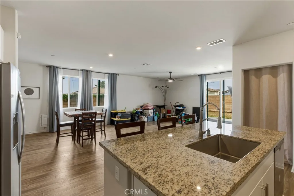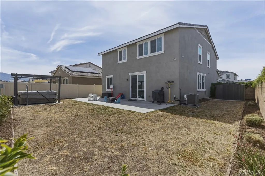 Spacious and beautifully designed, this nearly new two-story home offers 5 bedrooms and 3.5 bathrooms in a quiet, close-knit community. Built just two years ago with energy efficiency in mind, this home features paid-off solar, helping keep utility costs low year-round. The open and versatile floor plan includes a massive upstairs loftperfect for a game room, kids play area, or an additional TV/lounge space. Downstairs, youll find a private in-law suite complete with its own full bathroom, ideal for multi-generational living or guests. Located in the heart of San Jacinto, this home offers convenient access to nearby shopping, dining, and everyday essentials while maintaining a peaceful neighborhood feel. Dont miss the opportunity to own a modern, energy-efficient home with plenty of space for living, entertaining, and growing.