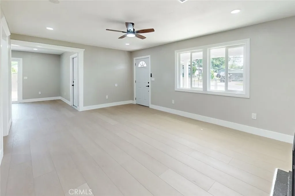 Imagine a home stripped down to the studs and rebuilt with nearly everything brand new. The flooring was reinforced, 40% of the framing was replaced, and a new 45-year roof was installed. A new HVAC system with ducting, all new insulation, brand new plumbing, a new main electrical panel, and all new wiring throughout bring peace of mind that both the major and minor systems have already been done. Inside, the home has been finished with a clean, modern style including new interior and exterior paint, brand new flooring, tall baseboards, trim work, and new windows throughout. The kitchen was completely redone with high-end quartz countertops, real wood soft-close cabinetry, stainless steel appliances, and a functional layout. The bathroom is entirely new, and even the exterior has been re-stuccoed and finished with a new garage door. Built to current standards and signed off by the city, this property sits on a quarter-acre lot with RV access and plenty of room for a future ADU, garden, workshop, or outdoor living space.