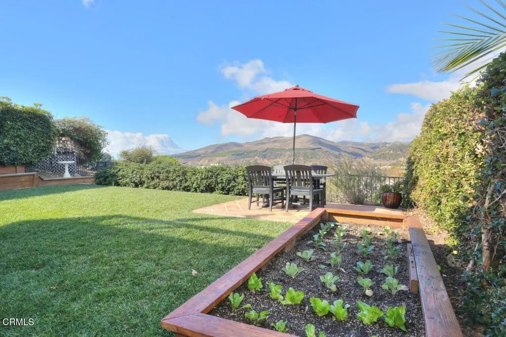Brock Hills Beauty with Panoramic Views in West VenturaPerched high in the sought-after hills of West Ventura, this beautifully upgraded home offers breathtaking panoramic views of the mountains, ocean, Ventura River Valley, community orchard, and city below. This charming 3-bedroom, 2.5-bath residence spans approximately 1,633 square feet and showcases pride of ownership with over $175,000 in thoughtful remodeling and enhancements.Step inside to discover a light-filled interior featuring hardwood floors throughout both levels, soaring cathedral ceilings in the living room and primary bedroom, and elegant custom details including beam work, wrought iron railings, and designer tile accents. The completely remodeled kitchen is a standout, boasting quartz countertops, new appliances, and modern finishes perfect for everyday living and entertaining.All three bedrooms are conveniently located upstairs, including an inviting primary suite designed for comfort and relaxation with a custom shower and spa-like ambiance. A secondary bedroom features a private balcony and sliding doors framing beautiful ocean views--an ideal setting for a home office or creative space.The private backyard offers a peaceful retreat with scenic vistas, a covered patio with stamped concrete, raised-bed vegetable garden, and included BBQ--perfect for outdoor dining and gatherings. Additional highlights include dual-pane windows, air conditioning, an expanded dining area, and a newly epoxy-coated garage floor.Located in the desirable Brock Hills community, residents enjoy a low HOA fee of $165/month and ac