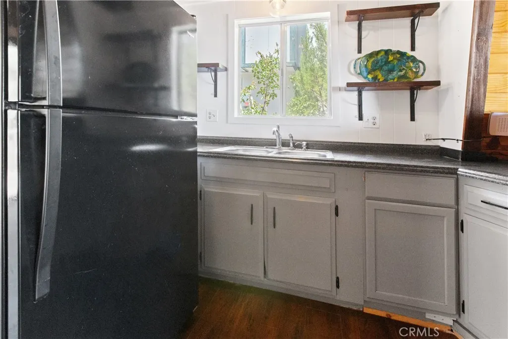 East Side of Wrightwood and perched among the trees with a fabulous view of the high desert. 2068 Slippery Elm Rd is an iconic Gambrel Style Home perfect for a mountain getaway or primary residence. Located with a flat lot with ease of parking and usable space for your imagination. Front and rear decks sprawl throughout the exterior making indoor and outdoor usable space a part of the charm of the home. As you enter the spacious home you are greeted with the living room and fireplace inviting you into the exquisite space. The quaint kitchen separates the living room and dining area. The modern style laundry is conveniently located indoors and will be included complimentary with the home. Soak in the full bath tub for the most relaxing options to wash away your day. The sliding doors from front and back open up to bring in a zephyr of mountaineous breeze. With the natural light and sound of whimsical pines you will be engulfed in best Wrightwood has to offer. The geourgeously crafted stairs leads you upstairs to 2 lofty bedrooms. The primary bedroom is complimented with an elevated deck that highlights the view of the desert.