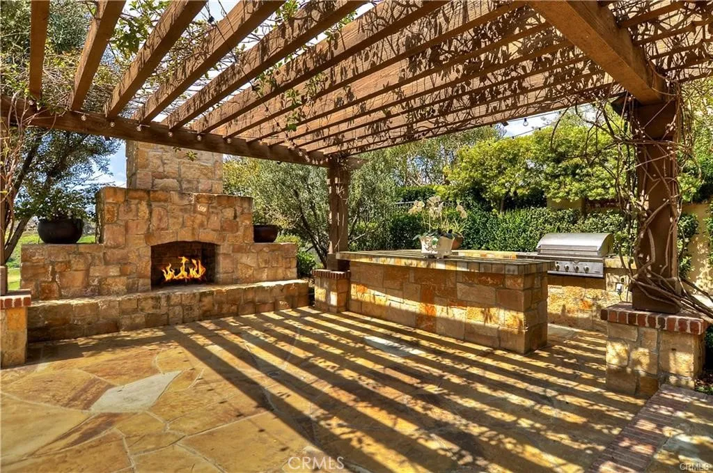 This gorgeous single-story estate in Shady Canyon has spectacular views of golf course, lake. city light and breathtaking rolling hills. The open floor plan offers 4 bedrooms and 4.5 baths. The spacious master bedroom sits in the middle of two large rooms, one with a sitting area, bookcase, and a cozy fireplace perfect for your relaxation, and another great for an office or exercise room. The immense great room has vast ceilings with wood details and large windows showcasing the spectacular views. The large kitchen opens to tranquil outdoors a beautiful Solid wood gazebo, a cozy fireplace, a relaxing sitting area, bar, and barbecue. The large dining room could accommodate many guests and a wine cellar. Wood flooring throughout and too many upgrades to mention. Gorgeous outdoors and large front sitting area and the serene interior courtyards. Whether you take pleasure in outdoor activities, hiking, biking, or golfing, Shady Canyon is perfect for you. Association amenities include tennis, pool, spa, and more. Having two gates that connect you to Newport Coast/Newport Beach, Laguna beach, freeways 405, 5, 73, and 133, makes it so convenient to drive anywhere with ease. Shopping area, restaurants, the famous Spectrum are all so conveniently close.
