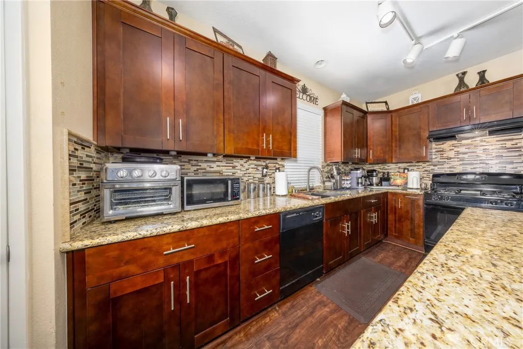 Beautifully maintained home in a cute little neighborhood of Southwest San Bernardino near Colton. No HOA dues and moderate property taxes. Home is is a short distance to the 215 Freeway and San Bernardino Valley College. Home is 4 bedrooms and 2 bathrooms with a separate living room and a family room with a cozy fireplace. Kitchen has been remodeled with upgraded cabinets, granite countertops and tile backsplash. Laminate flooring throughout the common areas of the home with carpet in the bedrooms. Primary suite has a large walk-in style slider closet and both bathrooms have double sinks and tub & shower combination. Other upgrades in the home include plantation shutters in multiple rooms, ceiling fans, recessed lighting and upgraded baseboards. Interior laundry room. Spacious backyard with a large covered aluminum patio cover with a large paved side yard on the east side of the home with back door access to the oversized 2 car garage. Long concrete driveway for plenty of onsite parking. Air Conditioner condenser unit was replaced about 7 years ago. Lift-n-lay roof replacement in Dec 2022. Views of local hills and valley surrounded mountains. Come & See the lovely home!