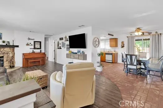 PAID OFF SOLAR.... WOW!! Welcome to your next home in the growing city of Apple Valley! Hot High Desert temps will be no problem when you can run the AC without worry knowing you have paid off Solar. This 3 bedroom, 2 bath home is perfectly located just off Bear Valley & Navajo. This offers easy access to shopping, dining, schools and the freeway. Step inside to a cozy living room featuring a warm fireplace, perfect for relaxing evenings. The Living room is open to a charming dining area with beautiful brick flooring that adds character and style & The kitchen with updated canned lighting along with plenty of cabinet space. Down the hall, youll find spacious bedrooms complete with ceiling fans, along with an updated master shower and convenient indoor laundry. Do you love to entertain outside? This home has the space for it. Step outside to the backyard with a large covered patio & two included sheds. This backyard has so much space for whatever your goals are. So if thats entertaining outdoors, space to add a pool or just more room for storage than there is a ton of room for all your backyard dreams to come true. Do not miss out on calling this home yours. A MUST SEEthis one wont last long!
