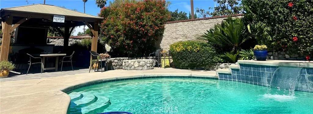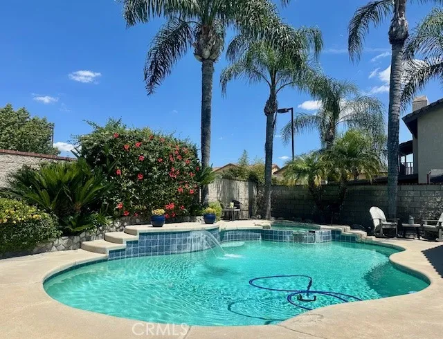 Entertainers Oasis! This stunning singlestory 4bedroom, 2bath home offers 2,194 sq ft of thoughtfully designed living space in a quiet 10home culdesac with no HOA. Step into the lightfilled living room featuring dramatic 18foot ceilings, complemented by a spacious family room with a stone fireplaceperfect for gatherings and everyday living. The upgraded kitchen boasts granite countertops, while laminate flooring and plantation shutters flow throughout the home. Both bathrooms feature skylights, and the private primary suite includes recessed lighting and direct access to the backyard pool and spa. French doors invite seamless indooroutdoor living. Designed for entertaining, the resortstyle backyard includes a pool, spa, gas firepit, artificial turf for pets, a large shed, and a custom gazebo with gas fireplace, TV, and SONOS sound system throughout the backyard. Additional features include solar panels, RV parking, a Ring camera system, interior alarm system with cell phone connection, new HVAC system, and a twocar garage. Conveniently located near the 60 freeway, nearby shopping, and also offers quick access to the TriCounties of San Bernardino, Los Angeles, and Orange County, this home truly has it all.