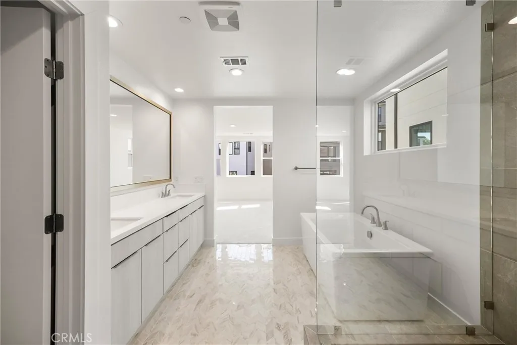 Welcome to this stunning, never-before-lived-in 5-bedroom, 5-bathroom home located in the prestigious Elevate community by Toll Brothers in Irvines highly sought-after Great Park Neighborhoods. Step inside to a grand 27-foot foyer that immediately sets the tone for the homes bright, open, and elegant design. The main level features a spacious open-concept great room and dining area with soaring vaulted ceilings and a luxury gas fireplaceperfect for both relaxing and entertaining. The chefs kitchen is a true centerpiece, showcasing smooth white cabinetry, quartz countertops with a full backsplash, and top-of-the-line WOLF appliances paired with a Sub-Zero refrigerator. Designer-selected finishes throughout the home add a refined and modern touch. Upstairs, the primary suite offers a serene retreat with a spa-like en-suite bathroom, complete with a freestanding soaking tub and a large glass-enclosed shower. Each additional bedroom is generously sized with access to its own bathroom, providing comfort and privacy for all. This thoughtfully designed floor plan includes two levels of living plus a third-floor bonus loft featuring a private deck, an additional bedroom, and a full bathideal for guests, entertaining, or a private office or retreat space. Additional highlights include solar panels to help reduce energy costs, with landscaping and window shutters to be installed soon for added convenience and curb appeal. Residents of the Great Park Neighborhoods enjoy access to multiple resort-style pools, parks, playgrounds, sports courts, and an array of exceptional community amen