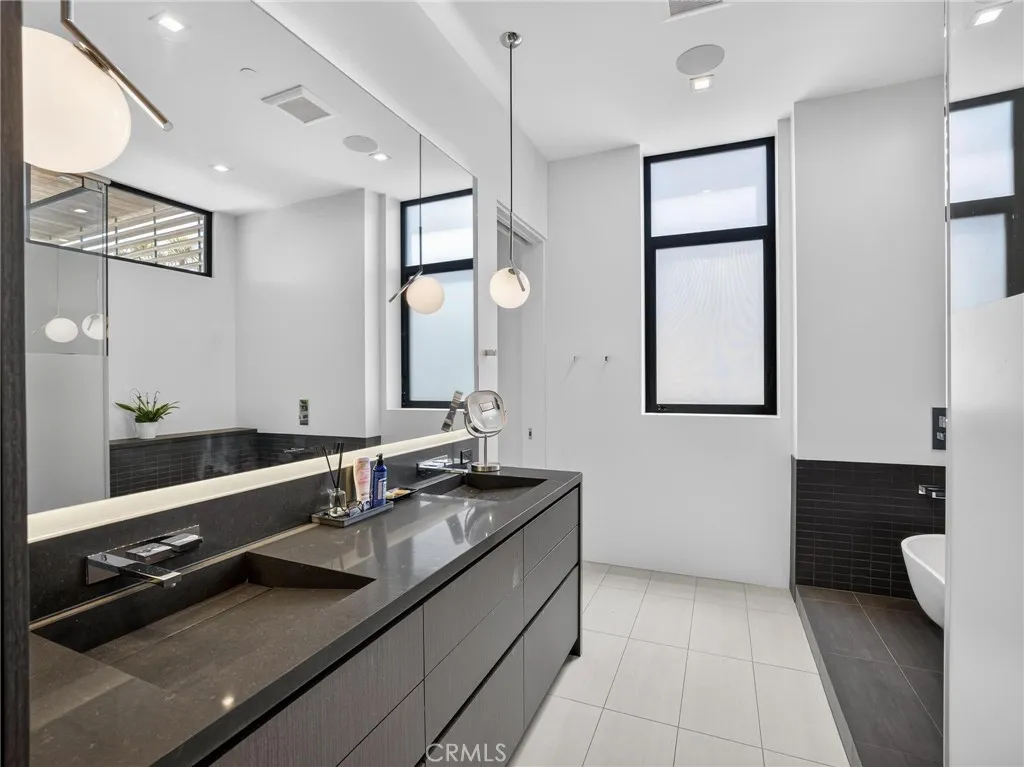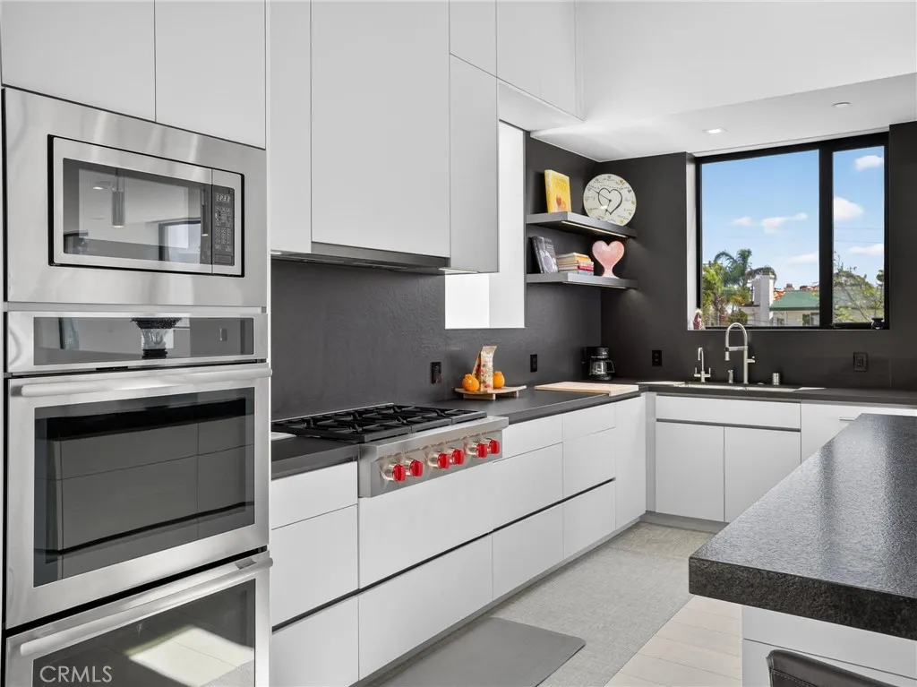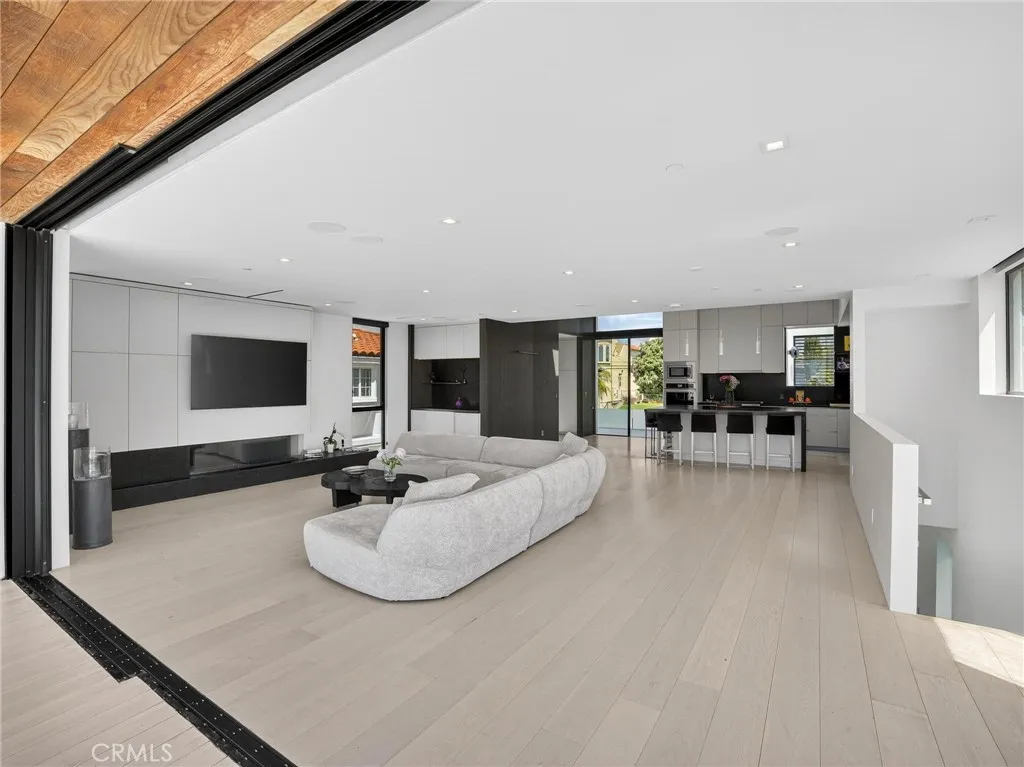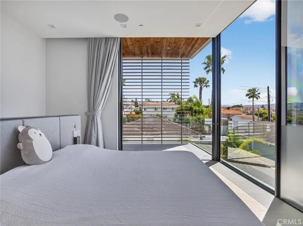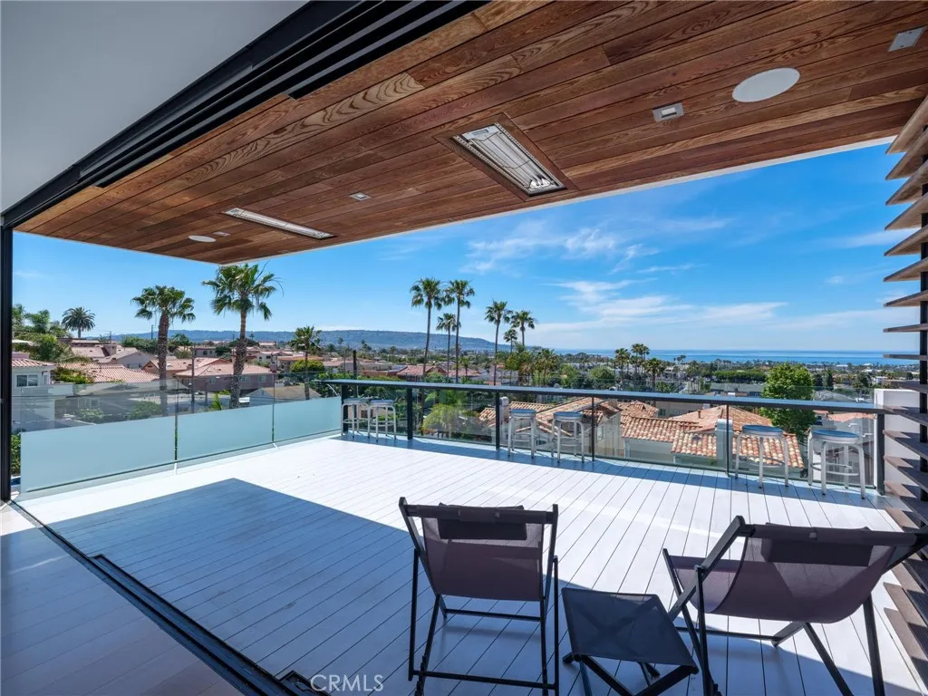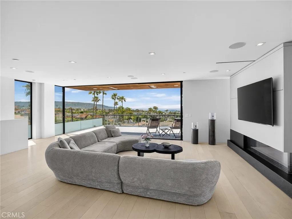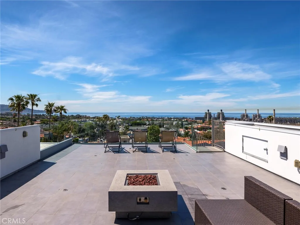 Experience European Modern!! No expense was spared by the current owners in the creation of this newer custom built modern masterpiece. The home was designed to capture the magnificent ocean and mountain views and maximize the natural light that floods the entire structure. It is tastefully decorated and fully furnished with beautiful quality furniture. The 3700 square feet of living space is arranged on three levels with a total of four bedrooms and 3.5 baths. The lower level is an entire suite consisting of a 4th bedroom and bath and a living room with wet bar opening to a private back yard with hot tub and six person sauna. The middle sleeping level finds the huge ocean view primary bedroom with en suite spa -like dual vanity bath with soaking tub and two walk-in closets. Two additional unique bedrooms share a second full bathroom. The top floor with its tall ceiling is open and spans the entire center island kitchen with breakfast bar and top line appliances, the designated dining area, and the fabulous family room with fireplace continuing to a west facing wall of glass which disappears to reveal a large ocean view dining and activity deck with bar-b-que and spiral staircase.. Take the staircase to the rare 900 square foot roof top deck to enjoy the 360 degree ocean and mountain views. Sip your coffee while watching the glorious sunrise and toast your wine to the spectacular sunsets. Parking is a breeze with a two car garage and four parking spots. Lots of storage space makes for organized living. Located near neighborhood markets and cafes and minutes from the beach,