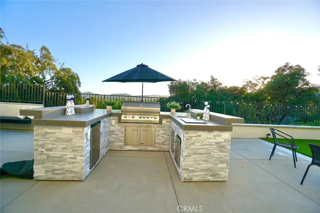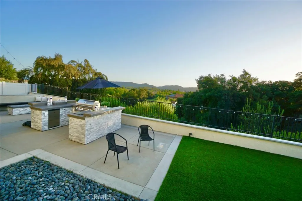 WELCOME TO THIS STUNNING 3,600 SQ. FT. UPGRADED HOME, SITUATED ON A CUL-DE-SAC W/ BREATHTAKING VIEWS.THIS HOME OFFERS EXCEPTIONAL CURB APPEAL W/ ARTIFICIAL TURF IN BOTH THE FRONT &BACKYARD, EXTENSIVE CONCRETE WORK, VINYL FENCING,& AN ENTERTAINERS DREAM BACKYARD FEATURING BUILT-IN BBQ ISLAND, FIRE PIT W/BUILT IN FLOATED SEATING & CONCRETE SEAT WALL AT BACK OF PROPERTY.PERFECT FOR ENJOYING PICTURESQUE SUNSETS. FRONT ENTRANCE GREETS YOU WITH 2 CONCRETE BUILT IN PLANTERS & WATERFALLS W/EXTERIOR POWER OUTLETS FOR EACH. STEP THROUGH THE DECORATIVE GLASS FRONT DOOR, COMPLEMENTED BY A DECORATIVE FOYER WINDOW ABOVE, INTO A GRAND ENTRY THAT WILL TAKE YOUR BREADTH AWAY W/SOARING DOUBLE-VOLUME CEILINGS. THIS DELIGHTFUL HOME SHOWCASES UPGRADED LARGE PORCELAIN TILE FLOORING&LAMINATED WOOD THRU-OUT, ENHANCED BY CROWN MOLDING, ELEGANT BASEBOARDS, PLANTATION SHUTTERS, RECESSED LIGHTING, & CEILING FANS. NEW MILGARD WINDOWS THRU0OUT HOME & SLIDER! ALL THE UPGRADES YOU CAN DREAM OF! THE FORMAL LIVING ROOM FLOWS SEAMLESSLY INTO THE DINING ROOM, CREATING AN IDEAL SPACE FOR ENTERTAINING. A FIRST-FLOOR LIBRARY WITH DUAL GLASS FRENCH DOORS OFFERS FLEXIBILITY FOR WORK OR RELAXATION, ALONG WITH AN ADDITIONAL DOWNSTAIRS FULL BEDROOM &FULL BATH FOR YOUR GUESTS. THE GOURMET KITCHEN IS BEAUTIFULLY DONE W/ UPDATED WHITE CABINETRY, QUARTZ COUNTERTOPS, BUILT-IN STAINLESS STEEL APPLIANCES, & A CHARMING FARMHOUSE SINK SET BENEATH A PICTURE WINDOW OVERLOOKING SERENE NATURAL VIEWS. KITCHEN NOOK OPENS TO A SPACIOUS FAMILY ROOM FEATURING A MARBLE-SURROUND HEARTH FIREPLACE, CREATING A WARM AND INVITING ATMOSPHERE.