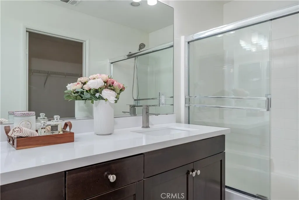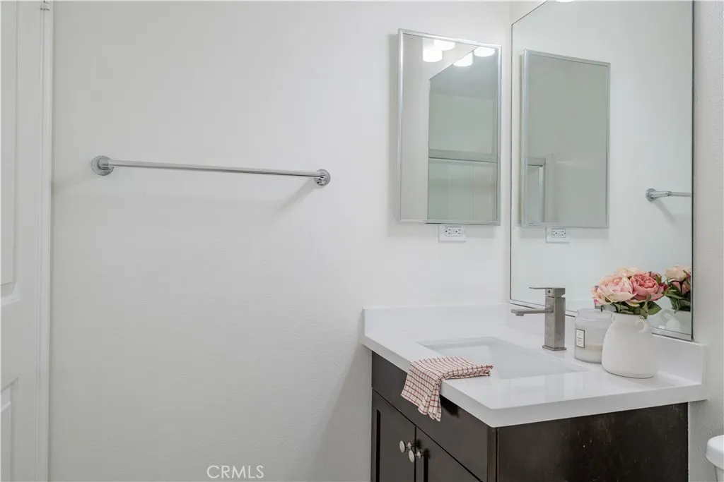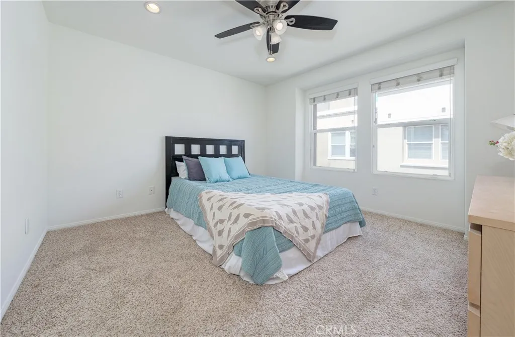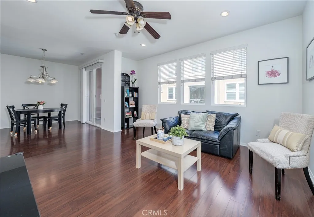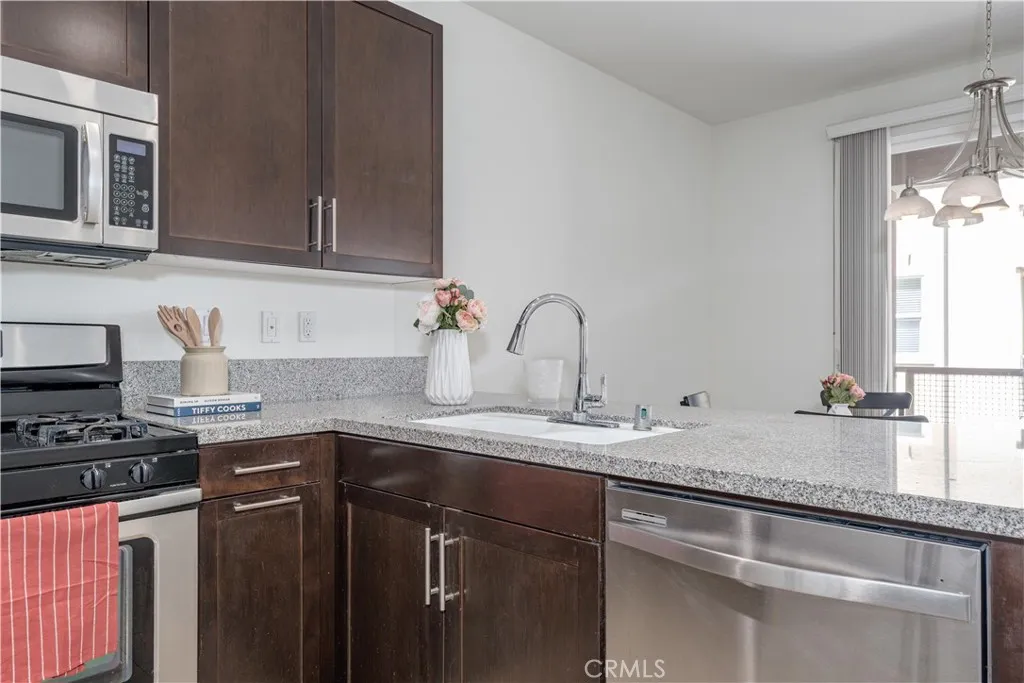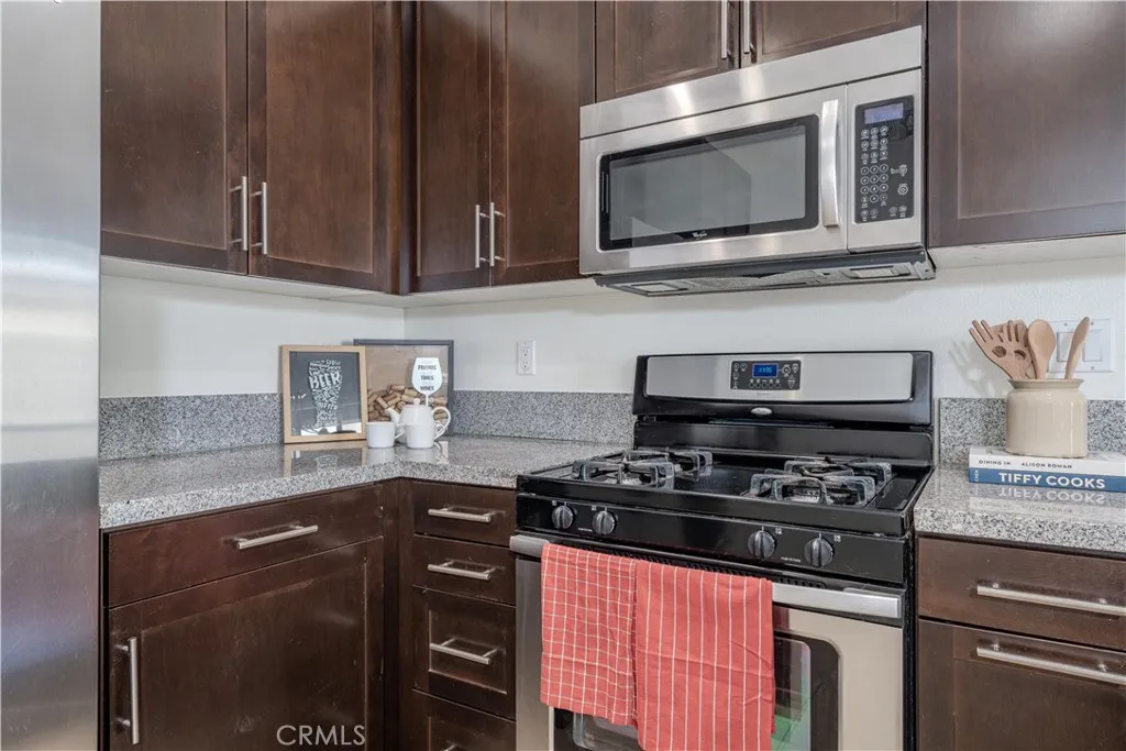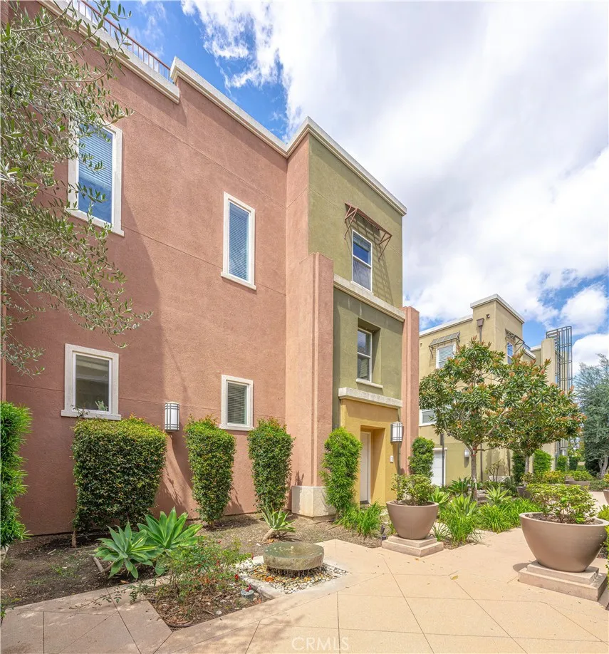 Welcome home to Garden Grove! This tri-level corner townhome offers approximately 1,333 square feet of open-concept living, where the kitchen seamlessly flows into the dining area and living room. It also features a private balcony, perfect for everyday living and entertaining. The kitchen is well-appointed with granite countertops, ample cabinetry, and stainless steel appliances. Upstairs, you'll find a spacious primary suite that includes a generously sized walk-in closet and a well-designed en-suite bathroom complete with dual vanities and a walk-in shower. Additionally, a secondary bedroom with its own private bathroom is located on the top floor, along with a conveniently placed laundry area. Designed with efficiency in mind, this LEED-certified home boasts energy-saving upgrades, including dual-pane windows, a tankless water heater, motion-sensor lighting, low-flow toilets, and high-efficiency Energy Star appliances, all contributing to lower utility costs. Other highlights include an oversized attached two-car tandem garage with extra storage space. Residents of Mosaic Walk enjoy access to a private pool and spa, sun deck, and tranquil courtyards with water features, with water and trash services included in the HOA dues. This home is conveniently situated near the 5, 22, and 57 freeways.