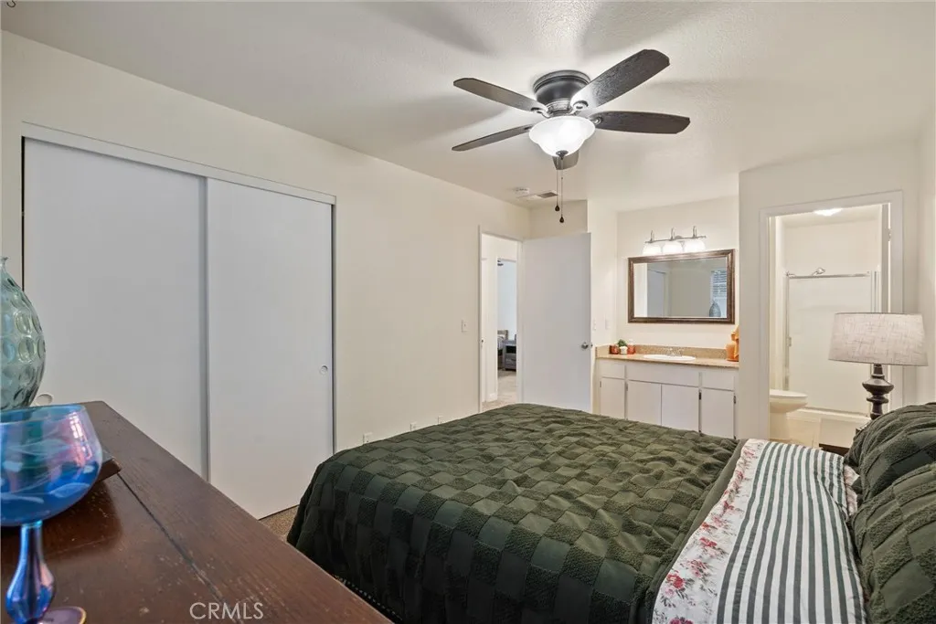 Welcome to your slice of perfectiona rarely available, move-in ready, ground-floor condo offering 3 spacious bedrooms and 2 full bathrooms, all without a single step to climb. Tucked away in the serene and quiet Sunridge gated community, this is the ideal sanctuary for anyone seeking convenience and comfort. Step inside to a home that feels new. You'll immediately notice this unit is perfectly positioned to be shaded in the summer, beautiful fresh paint, and brand new carpet throughout. The open-concept kitchen is a features granite countertops, a stylish tile backsplash, and newer fridge, & dishwasher. Inside laundry enhances the ease of living. The bedrooms are generously sized, with the master suite serving as a private retreat, peacefully situated at the end of the hallway. Both full bathrooms have been updated with contemporary lighting and have granite vanity tops. The master bathroom boasts a walk-in shower, while the guest bath provides a convenient tub/shower combination. Notice that most of the rooms have a ceiling fan that is newer. You have a small private patio that includes a storage closet. Location is everything, and this condo is prime. It is close to the sparkling pool and spa, making it feel like your own private backyard oasis. Plus, enjoy the ultimate peace of mind knowing the dedicated HOA takes care of everything, from yard maintenance and pool upkeep to building maintenance (they recently painted the buildings and replaced the parking lot). Everything moves like clockwork. Even trash and recycling are collected a few times a week for effortless livin