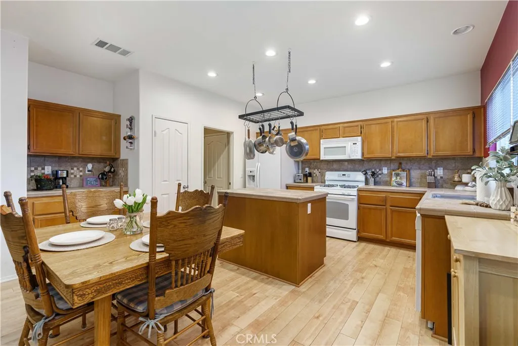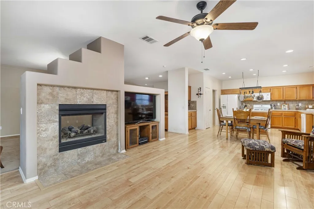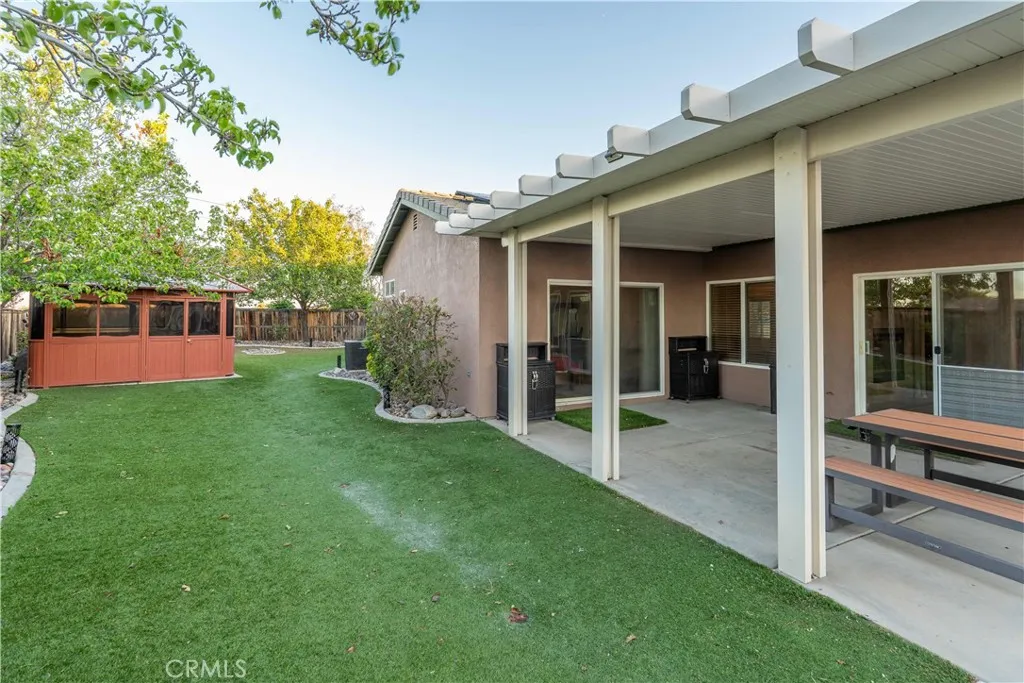 Welcome to 13466 Viejo Circle, a spacious single-story home offering 4 bedrooms, 3 bathrooms, and a layout designed for both everyday comfort and easy entertaining. From the moment you arrive, the curb appeal stands out with beautiful fencing, river rock accents, turf, and landscape lighting that create a warm and inviting first impression. The large driveway and 2-car garage with electrical for a car charger add convenience, while the expansive yard offers room to enjoy the outdoors in multiple ways. Inside, the home features an open kitchen with a large island, abundant storage, and a fantastic pantry, all flowing naturally into the dining area and family room. A double-sided fireplace connects the living and family rooms, adding character and a cozy focal point to both spaces. There is also a separate formal dining room, giving you added flexibility for gatherings, holidays, or daily use. The primary suite includes a walk-in closet and dual sinks. The indoor laundry room adds practical convenience and storage as well. Step outside to a backyard built for enjoyment, with turf, river rock, RV access, black water disposal, 2 built-in sheds, a large covered patio, and a spa tucked inside an enclosed gazebo. With its spacious lot and thoughtful exterior features, this property offers a unique combination of function, comfort, and outdoor appeal.