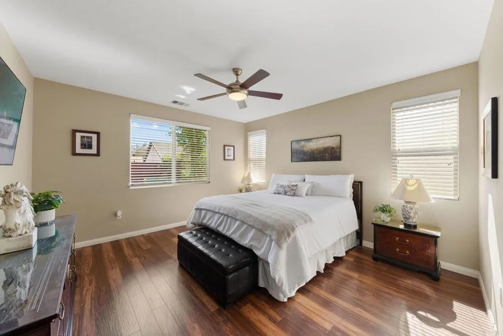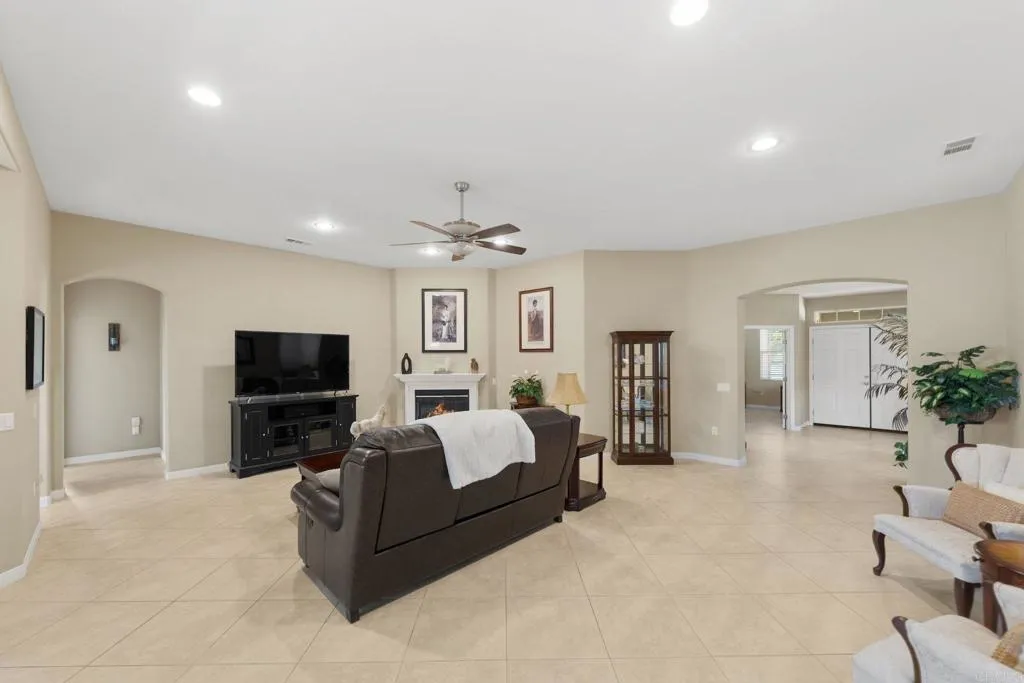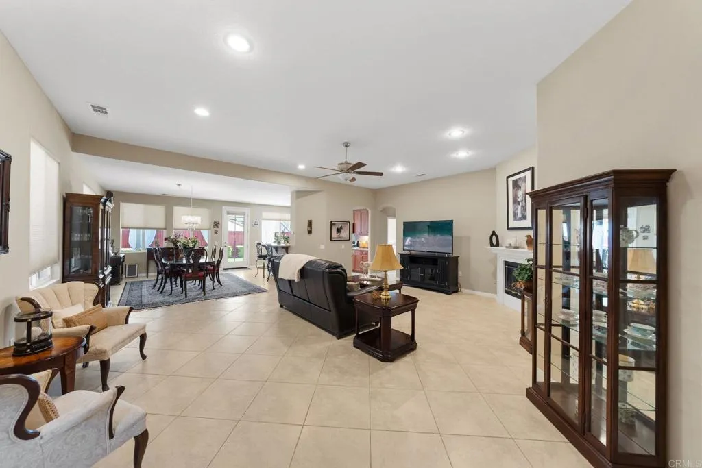 Rare Opportunity to own this upgraded single-story Invitational 2 model cul-de-sac home in the popular Four Seasons 55+ community. This 2 bedroom, 2 bath with Den / Office, offers a spacious open floor plan with tile and laminated wood flooring, upgraded kitchen with stainless appliances, great room with fireplace, indoor laundry room with sink and cabinets, double cell translucent blinds, large garage with golf cart parking and epoxied floors with storage cabinets, ceiling fans, covered patio and nicely landscaped front and back yards. Four Seasons Amenities Include 24 hr Gate guarded community with Bistro, ballroom, theater, game room, billiards, library, gym, salon, covered BBQ area, pool, spa, adjacent golf course, bocce, shuffleboard, tennis, and pickleball Close Proximity to Diamond Valley Lake, Temecula Wine Country and Centrally located and easy access to Palm Springs, San Diego and Los Angeles. For snowbirds, downsizers, or anyone who is seeking a vibrant, active 55+ community with an upscale single-level living, this home and community should be on your list to see