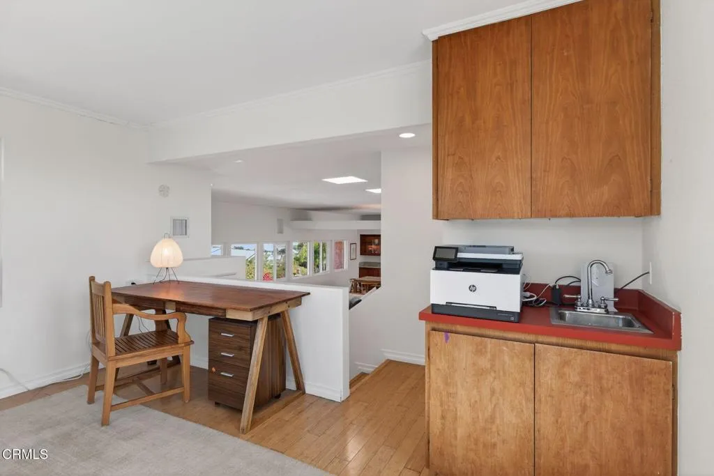 Experience true serenity in this gated Japandi-inspired estate, thoughtfully designed with architectural influences reminiscent of Frank Lloyd Wright. Perched on the top of the hill, it captures breathtaking 360-degree views of the mountains, ocean and orchards. This exceptional property offers a rare sense of peace, privacy, and connection to nature.Set on over 3.5 acres, this home provides unparalleled separation from neighboring properties, creating a secluded retreat that feels worlds away. Inside, you'll find 4 spacious bedrooms plus 2 versatile flex spaces--ideal for a home office, playroom, gym, or additional guest accommodations.The 4th bedroom/bathroom is a bonus space of approx.500 sq ft (not included in the home sq footage). It features a private entrance and en-suite bathroom, making it perfect for multigenerational living, a teenager retreat, or a fully separate guest suite. This bed/bath is not permitted. Designed with efficiency in mind, the home includes owned solar for energy savings and a convenient EV charger in the garage--blending sustainability with modern comfort.Opportunities like this are incredibly rare on the rental market. Schedule your private showing today and experience this one-of-a-kind estate in person.