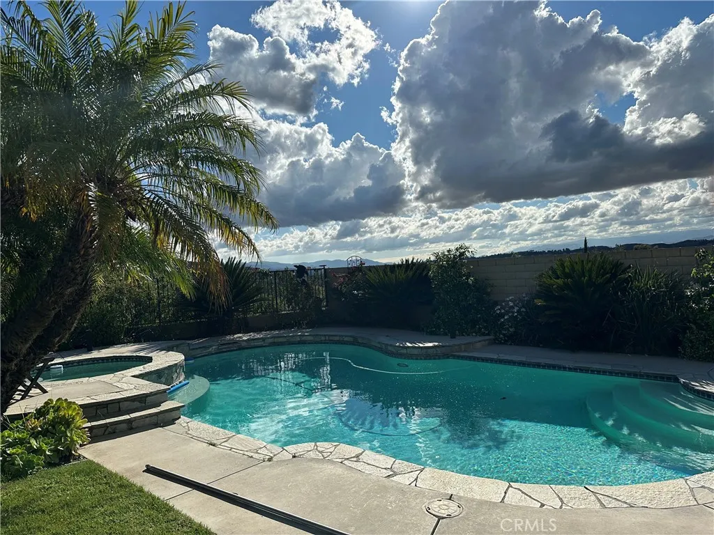 Enjoy beautiful sweeping sunsets from den and kitchen of pool/jacuzzi and mountains with magic mountain in the distance. Sit under covered patio and barbeque while enjoying your privacy on top of a hill over brand new remodeled park with exercise stairs, basketball, softball and children's covered playground. Corner house on cul-de-sac in very quiet neighborhood near the new Skyline Ranch Area. No HOA!