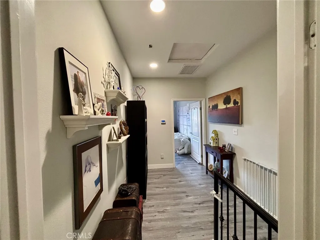 Not your typical townhome! A Mediterranean style with soaring high ceilings on both levels and over 1400 square feet. Open the gate to reveal a private patio space perfect for BBQ's and entertaining. Once inside, the wow factor kicks in. One large open concept living area where you have sight lines from the kitchen -through the living room- to the patio. Be a part of the action. The living room features a beautiful stone tile fireplace that adds warmth and charm to the home. The kitchen enjoys tons of counter space ,a breakfast bar, wood cabinetry and a walk in pantry for fantastic storage. There is direct access to the 2 car garage and laundry area. The half bath is tucked away nicely. Upstairs there are 2 HUGE primary suites with vaulted high ceilings, balconies, private bathrooms and huge walk-in closets. The main one has an East facing balcony "think sunrise", a desk area (or seating nook) and a romantic fireplace. That ensuite has a dual vanity, tub shower combo and a walk in closet. The other primary bedroom suite has a West facing balcony "think sunsets". Same soaring high ceilings, private bathroom and walk in closet. This set up is perfect for room mates. At the top of the stairs, on the landing there is enough bonus space for an office desk area. There are so many good things about this home like air conditioning, an extra parking spot, ceiling fans and storage shelves in the attached garage. Award winning Torrance school district. This one is a must see!