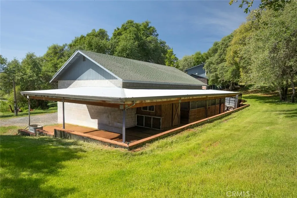 Welcome to 7005 Cross Star Trail, nestled in the peaceful countryside of Loma Rica, this beautifully maintained property offers the perfect blend of comfort, functionality and rural charm. This spacious 2032sqft 3 bedroom, 3 bathroom home features a versatile floor plan, including a full bathroom on the main level--ideal for guests. The kitchen showcases painted cabinetry, butcher block countertops and updated appliances, flowing seamlessly into a generous dining area that can also serve as a secondary family room. Step outside onto the rear grilling patio--perfect for entertaining and enjoying the serene surroundings. The front living room is bright and inviting offering expansive views of the property and lush landscape, while durable laminate flooring, tile and LVP throughout the home makes country living both practical and stylish. Another great feature is the converted garage now bonus room/home gym with lots of potential for a number of uses. Upstairs you will find two spacious bedrooms and an updated guest bathroom. The oversized primary suite is the perfect place to escape from it all with lots of natural light, updated ensuite bathroom, walk in closet and private exterior access to the covered deck --an ideal retreat to unwind and take in the tranquil setting. The property is thoughtfully set up for equestrian use, featuring three 10x12 stalls, feed room, large, covered area for equipment, cross ties or additional storage. A 30x50 shop provides ample space for projects, parking or storage. The lush green grounds stay green year round thanks to BVID irrigation water