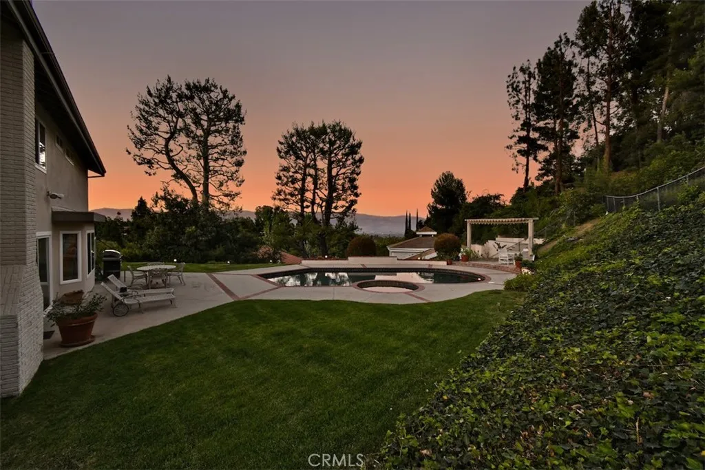 Located on a serene street in the desirable Braemar area of Tarzana Hills on 17,500 sq ft lot, this 5-bedroom, 3-bathroom residence offers 3,260 sq ft of well-designed living space that has been lovingly and meticulously maintained over the years. A dramatic entry with soaring ceilings introduces the home, leading into expansive living areas designed for both entertaining and everyday living. The main level flows effortlessly from the living and dining areas into a spacious family room with a wet bar, and opening to the backyard for seamless indoor-outdoor living. The kitchen and breakfast area are ideally positioned with direct access to a terrace, perfect for al fresco dining. Additional features of the main-level are a bedroom and bath providing flexibility for guests, office, or extended living, and a direct access 3 car garage. Upstairs, you'll find four additional bedrooms including a generously sized primary suite with a walk-in closet, en-suite bath and beautiful views. The backyard is a standout feature, offering a true private retreat with a pool and spa, multiple terraces, and a large grassy area, all surrounded by mature landscaping and views, ideal for entertaining, relaxing, and enjoying the best of Southern California living. Situated near top-rated schools and scenic hiking trails, this location offers both tranquility and convenience. This is a rare opportunity to own a substantial property in a prime Tarzana neighborhood, ideal to enjoy as-is or customize to your vision.