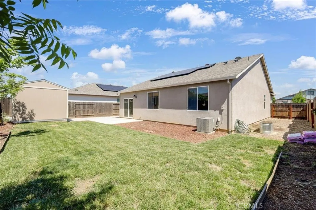Welcome to this beautifully upgraded 2023-built home in the desirable Orchards communitymove-in ready and loaded with modern features! This thoughtfully designed single-story residence offers 3 bedrooms, 2 bathrooms, and a spacious, open-concept layout perfect for both everyday living and entertaining. The chef-inspired kitchen is the heart of the home, showcasing sparkling granite countertops, oversized wood cabinetry, a full suite of energy-efficient appliances, and seamless flow into the dining areaideal for gathering with family and friends. Enjoy a range of designer-selected upgrades at no extra cost, including luxury vinyl plank flooring, a Wi-Fi-enabled garage door opener, and a programmable thermostatblending style with smart-home convenience. Recent improvements add even more value, with $30,000 invested in concrete work, a shed, and lawn enhancements, along with new carpet and fresh interior paint, giving the home a like-new feel. Step outside to find RV parking and owned solar, offering both flexibility and long-term energy savings. Inside, you'll appreciate the abundant storage and functional layout designed to maximize comfort. Situated on a quiet street near parks and schools, this home also provides easy access to Highways 70, 65, and 99, and is just minutes from Costco and Hard Rock Casinodelivering the perfect blend of convenience and lifestyle. Stylish, efficient, and truly turnkeythis is a home you don't want to miss!