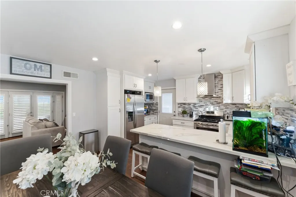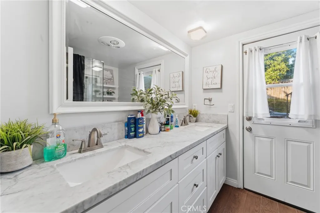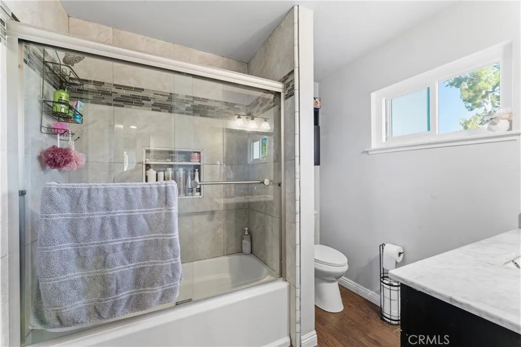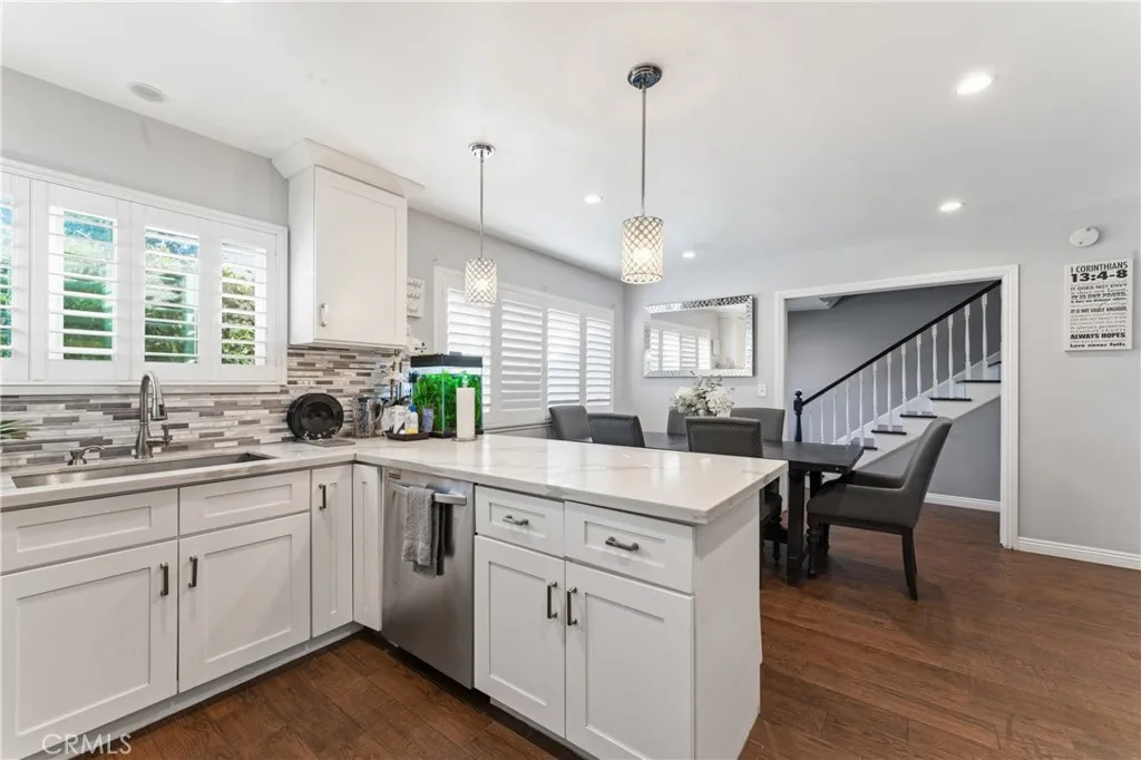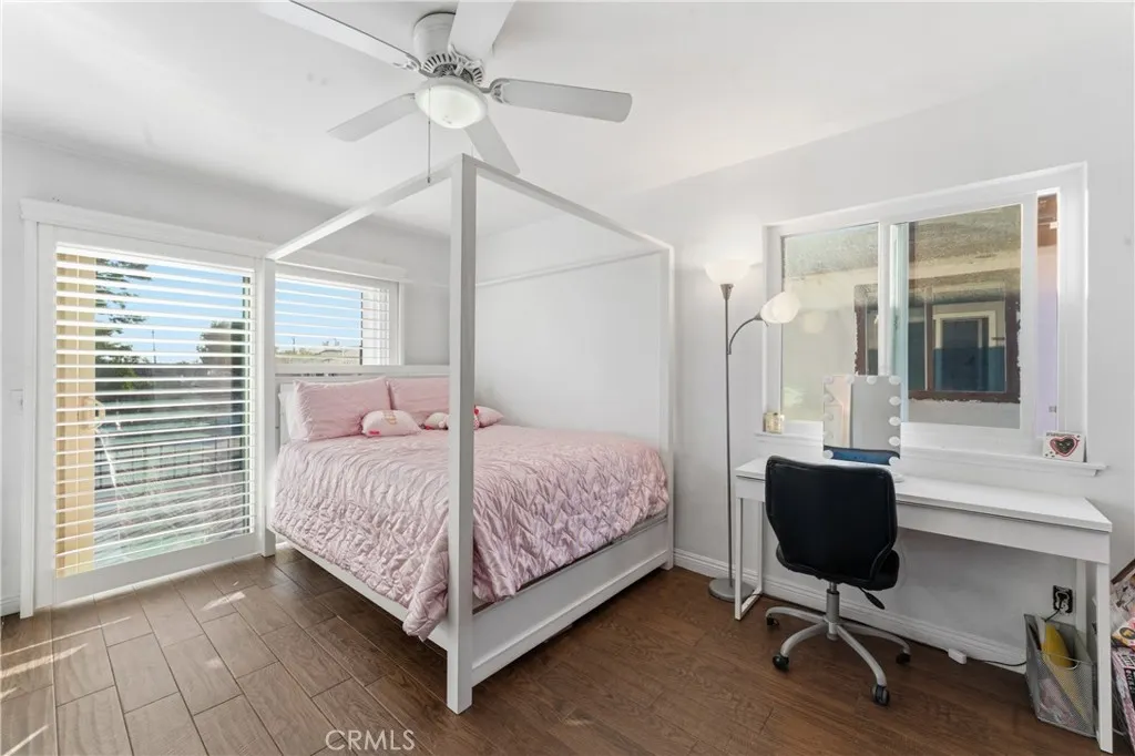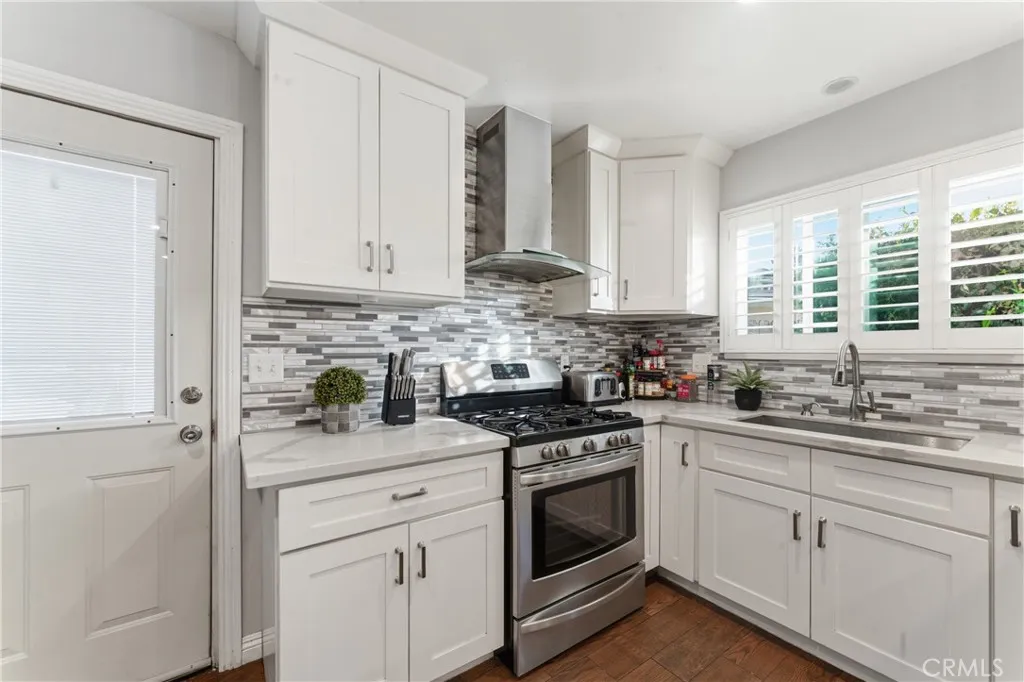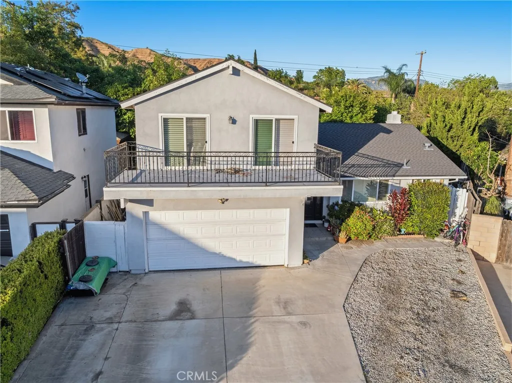 Welcome to this beautifully upgraded and remodeled 4-bedroom, 2-bath home near Lake View Terrace. Featuring plantation shutters and recessed lighting throughout, along with central heating and air, this home offers both comfort and style. The modern kitchen showcases marbled quartz countertops, a full backsplash, soft-close cabinetry, stainless steel appliances, a breakfast bar, and additional counter space ideal for a dry bar setup. The inviting living room features a cozy gas fireplace and opens to an oversized, private backyardperfect for entertainingwith multiple access points and a large covered patio complete with ceiling fan and lighting. A convenient downstairs bedroom is ideal for guests, in-laws, or roommates, with potential for ADU conversion. Upstairs offers three spacious bedrooms, including two with direct access to a charming balcony/terraceperfect for enjoying sunset views. A versatile loft area provides additional space for a home office or lounge.