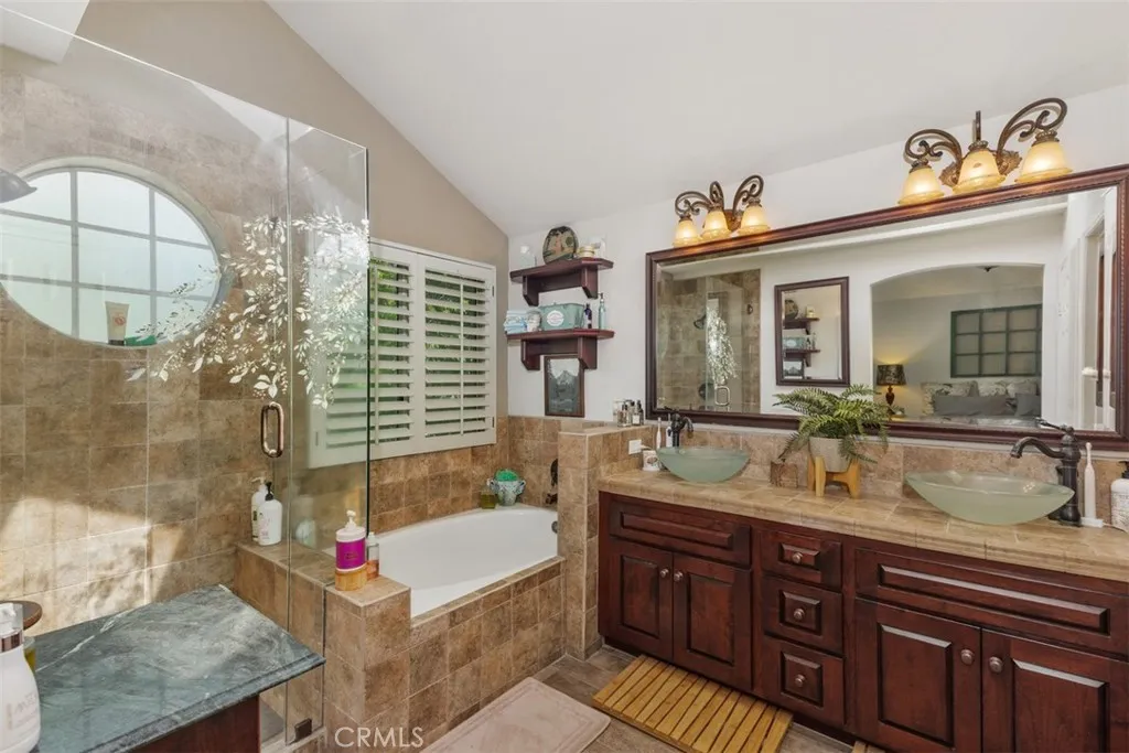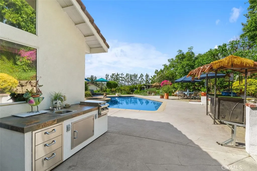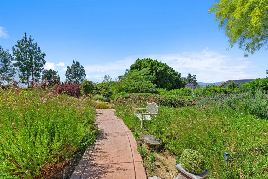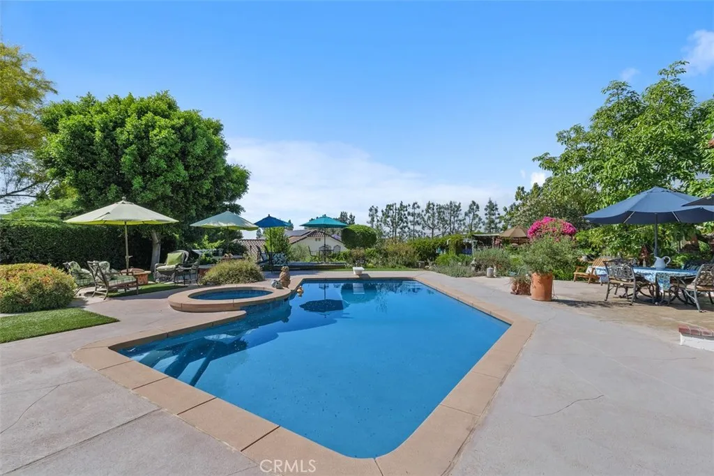 Welcome to your private escape in the heart of The Orchard. This beautifully upgraded, gated home blends comfort, style, and serenity across 2,143 square feet of thoughtfully crafted living space. The remodeled kitchen opens to a warm and inviting family room, complete with a custom fireplace that sets the tone for cozy evenings and effortless gatherings. Light pours in through large windows, highlighting the soaring ceilings, plantation shutters, and custom built-ins that make the home feel both spacious and intimate. A convenient main-floor bedroom and bath offer flexibility for guests, hobbies, or work. Outside, your personal sanctuary awaitsnearly half an acre of lush gardens, winding paths, and peaceful sitting areas designed for relaxation. The sparkling pool and spa, paired with an outdoor kitchen, make entertaining a dream. With fruit trees, beautiful views, and unmatched privacy, this backyard feels like your own hidden retreat.