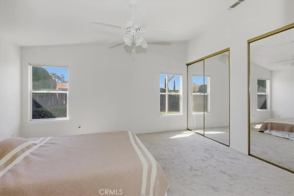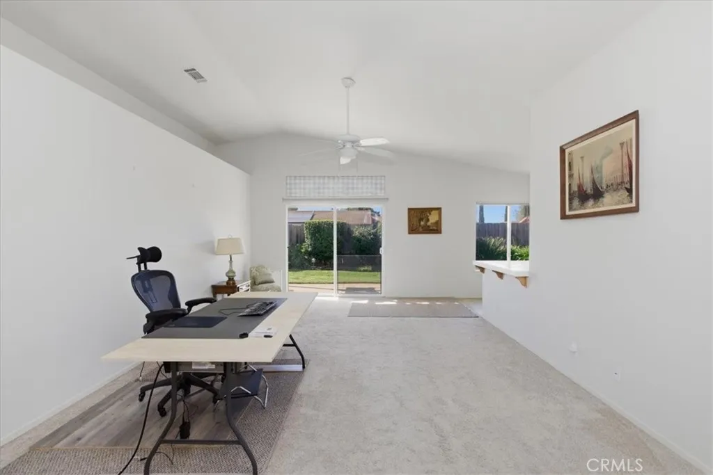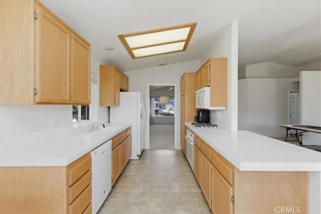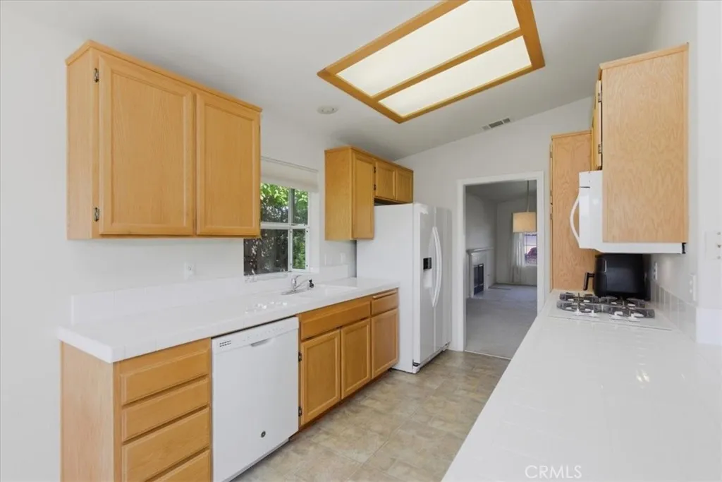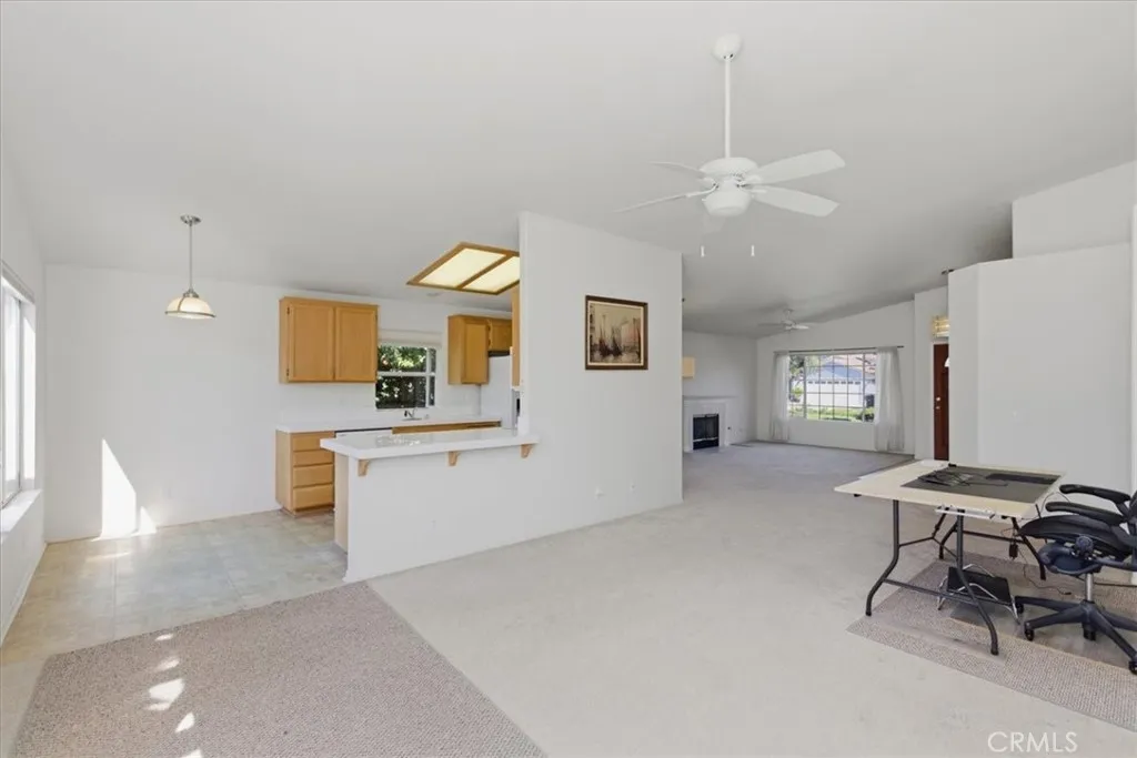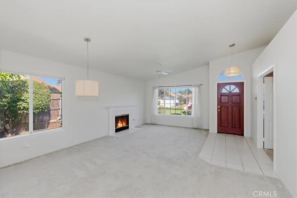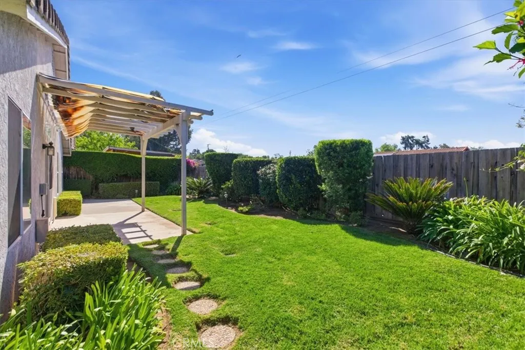 Welcome to this move-in-ready single-story ranch home tucked away on a quiet cul-de-sac in desirable Fallbrook. This charming 3-bedroom, 2-bath residence offers 1,620 square feet of comfortable living with a bright, open layout and thoughtful features throughout. Step inside to soaring vaulted ceilings, abundant natural light, and a spacious living room with a cozy gas-start fireplaceperfect for relaxing evenings. The oversized family room flows seamlessly from the living area, creating an ideal space for entertaining or everyday living. The kitchen features a gas cooktop, microwave, garden window, and a sunny dining area, all positioned to enjoy views of the beautifully maintained backyard. Dual-pane windows, ceiling fans throughout, and wide hallways enhance comfort and functionality. The primary suite offers two closets, mirrored wardrobe doors, and an en-suite bath with dual sinks and a walk-in shower. Additional highlights include indoor laundry with gas or electric options, a garage sink, and ample storage. Outside, enjoy a manicured yard with automatic sprinklers, a covered patio for outdoor dining, and mature fruit trees, including orange and grapefruit. The landscaped front yard, brick veneer accents, tile roof, and roll-up garage door add to the homes curb appeal. Located on a peaceful cul-de-sac, this home offers privacy while remaining close to local amenities. A fantastic opportunity for first-time buyers or anyone seeking easy single-level living.