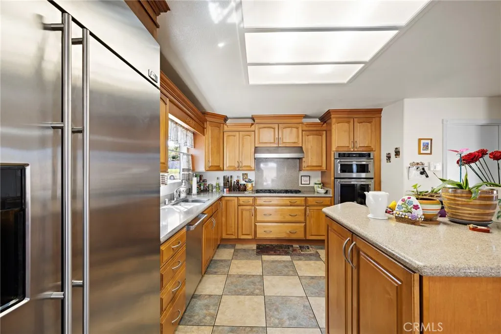Tucked away on a quiet cul-de-sac, this thoughtfully designed Spanish-style home blends warmth, openness, and everyday functionality into a space that truly feels like home. From the moment you step inside, youre greeted by a sense of connection; wide archways draw the living room and kitchen together, creating a natural flow that feels both open and inviting. Sunlight pours in throughout the day thanks to the homes south-facing orientation, with dual patio access allowing light to move effortlessly through the main living spaces. Featuring 4 bedrooms and 3 full bathrooms across 2,018 sq ft, the home was originally built in 1964 the home was taken down to the garage and extensively rebuilt in 2003, offering the benefits of newer construction. At the heart of the home, the open kitchen is anchored by a central island and abundant cabinetry, opening seamlessly into the living area, making it ideal for hosting lively get-togethers and entertaining guests. The living room itself offers an intimate setting, centered around a gas fireplace and enhanced by its connection to the backyard. Step outside and experience a covered patio that invites slow mornings with coffee or relaxed evenings unwinding. The elevated brick deck creates a second level of outdoor living, perfect for entertaining, celebrating, or simply enjoying the peaceful surroundings. Mature citrus trees, including tangerine, lemon, and orange, line the upper portion of the yard. The primary suite is positioned privately at the rear of the home. With its generous size, walk-in closet, en suite bath, and direct access