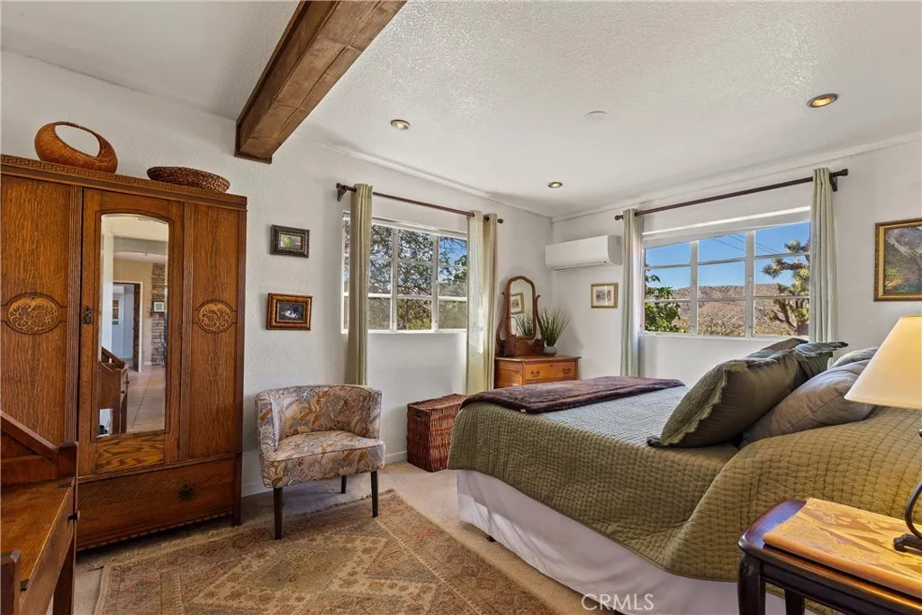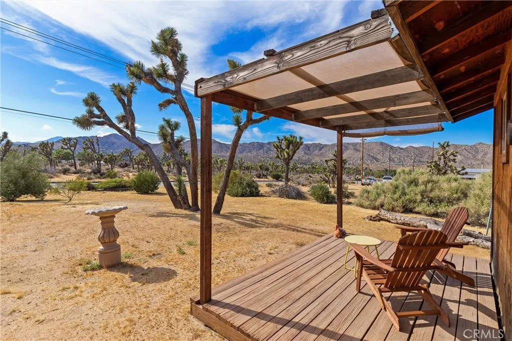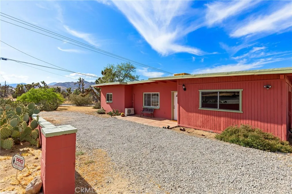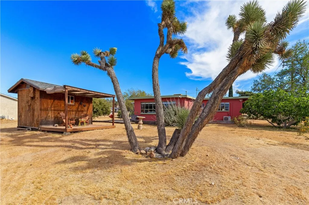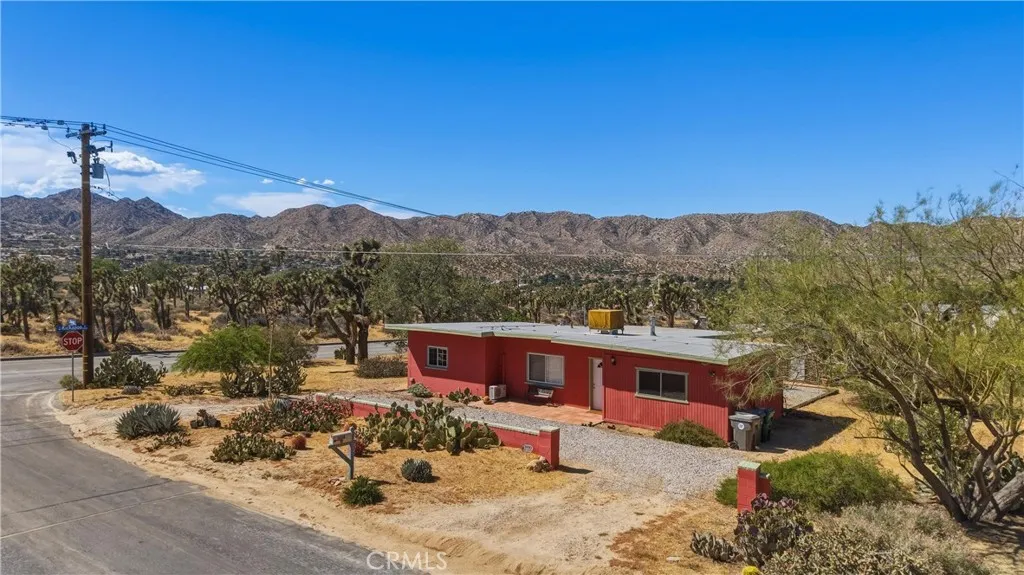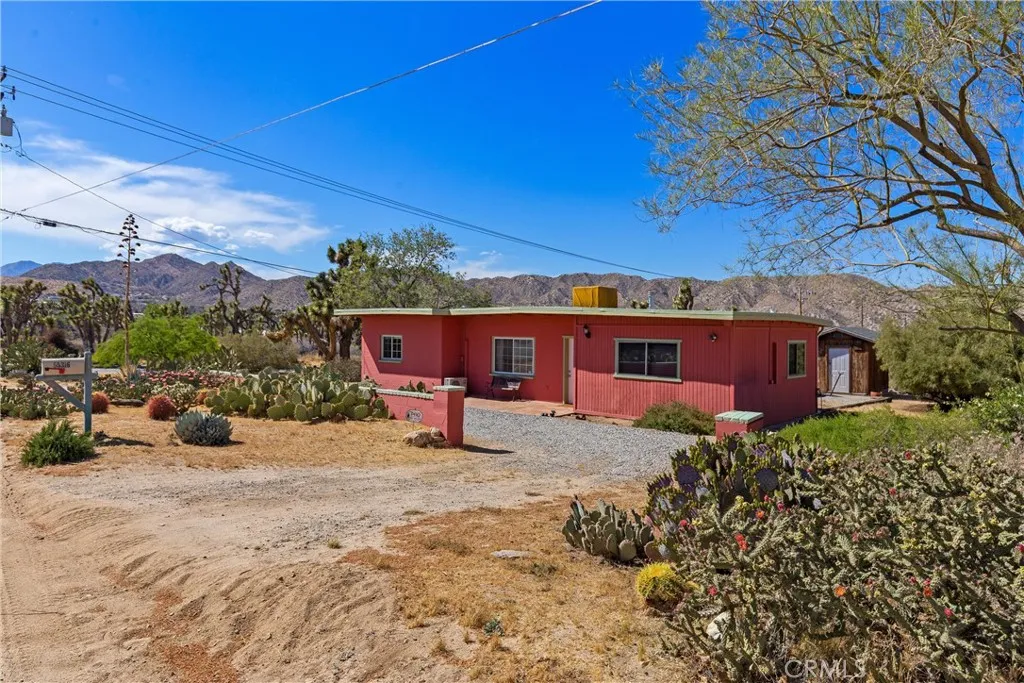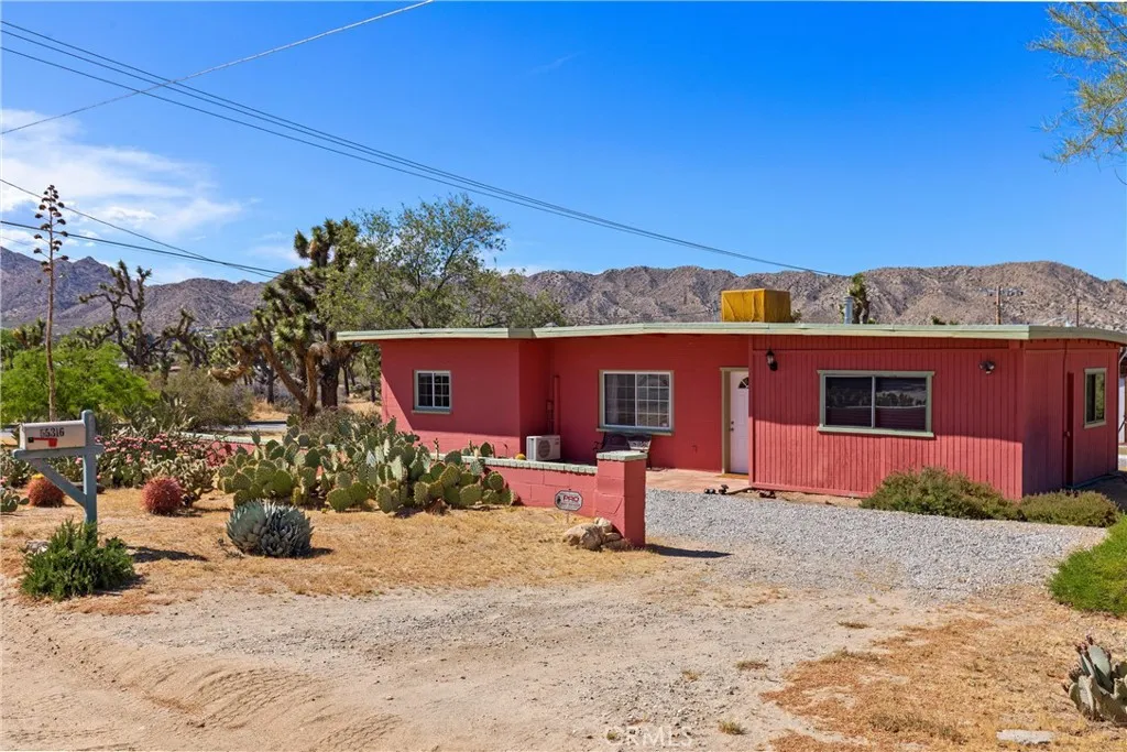 Discover the timeless appeal of this charming mid-century masonry home, ideally situated on a spacious 0.54-acre lot south of Highway 62 in Yucca Valley. Offering three bedrooms and one bathroom, this residence blends classic character with comfortable desert living. Expansive windows throughout the home invite abundant natural light, highlighting the warmth and authenticity of its mid-century design. The thoughtful layout creates an inviting atmosphere, perfect for both everyday living and weekend retreats. Set in an established neighborhood filled with iconic Joshua trees, the property provides a sense of privacy while remaining conveniently close to local shopping, dining, and amenities. Enjoy year-round comfort with multiple split heating and cooling systems, complemented by an evaporative cooler well-suited for the desert climate. Outdoor features enhance the propertys appeal, including a detached storage building and a view deck that captures sweeping vistas of the surrounding landscape, Joshua trees, and the distant silhouette of Mount San Gorgonio. This is a rare opportunity to own a character-rich home in one of Yucca Valleys most desirable locations, offering space, views, and classic desert charm.