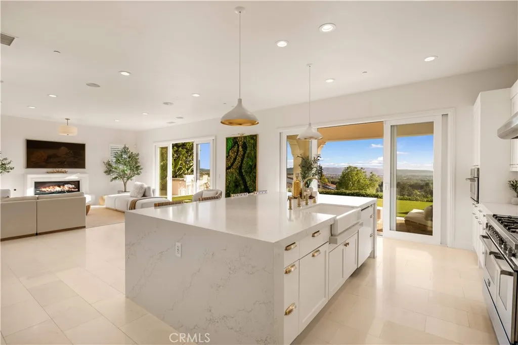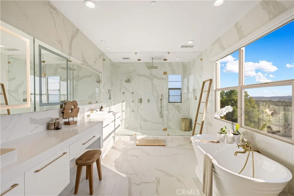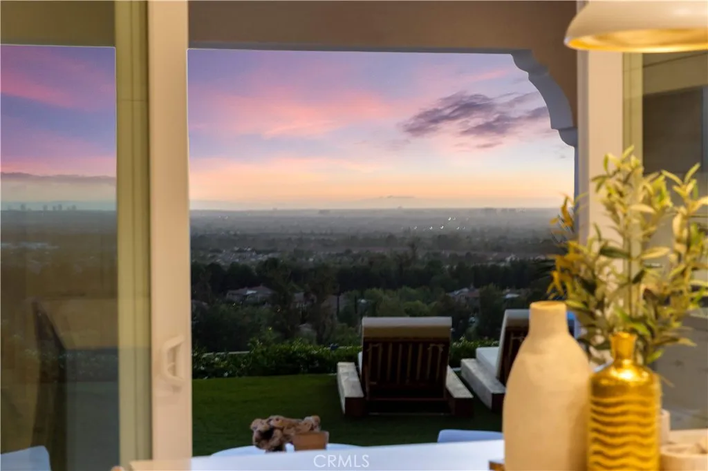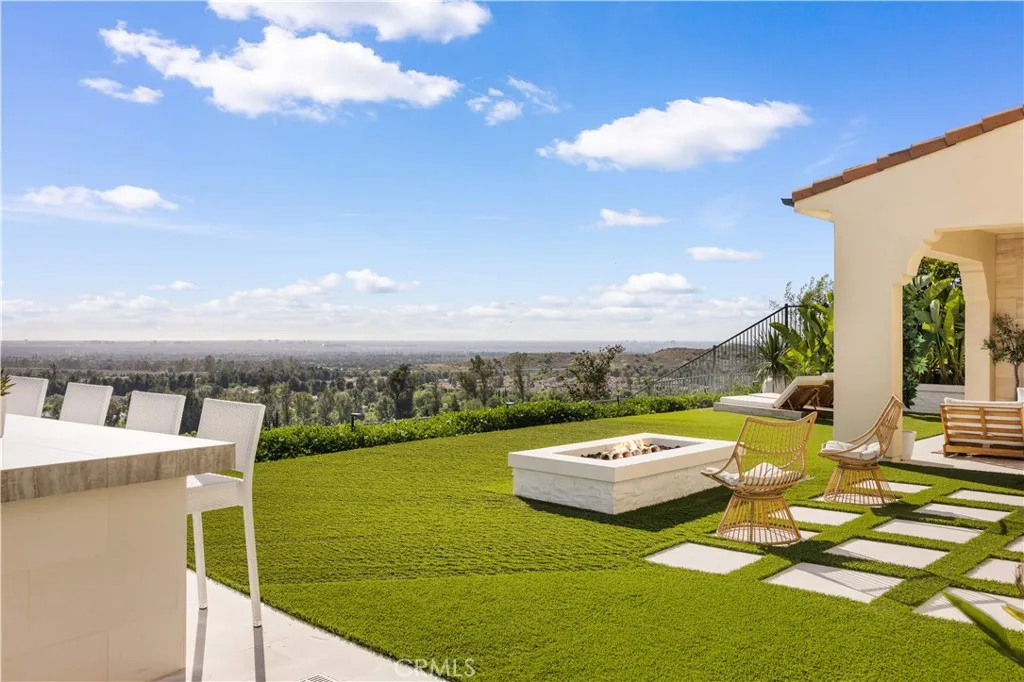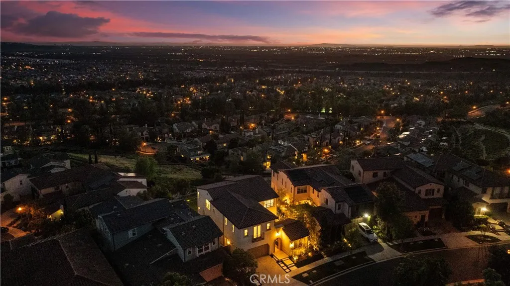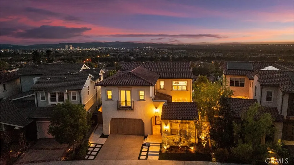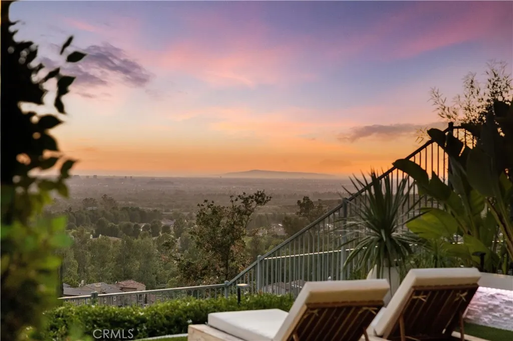 Welcome to this beautiful view home situated at the highest point of the gated Lambert Ranch community in Irvine. With the rare perk of no Mello-Roos, this property offers incredible panoramic vistas of daily sunsets, twinkling city lights, Catalina Island, the Palos Verdes Peninsula, and even the Disneyland fireworks. It's an expansive view that truly rivals and arguably surpasses Orchard Hills Summit. The property greets you with a private stone courtyard featuring relaxing water features and a highly convenient detached guest casita, perfect for visitors or a quiet home office. Inside, the 4-bedroom, 4.5-bathroom layout is open, inviting, and thoughtfully designed. A spacious great room and formal dining area flow seamlessly into a kitchen built for both everyday living and easy entertaining. The kitchen features a large center island, a 6-burner Bertazzoni range, imported German pendant lighting, a walk-in pantry, and a dedicated butlers pantry complete with dual wine fridges. French doors open to a fantastic backyard tailored for enjoying the incredible scenery. Out here, you'll find a covered loggia with a gas fireplace and TV setup, a stone patio with a built-in BBQ, a firepit, and plenty of space to relax. Fully wired with an integrated indoor/outdoor speaker system, it's the perfect spot to hang out and take in the surroundings. Upstairs, the primary suite serves as a relaxing retreat, complete with a spa-like bathroom offering a soaking tub, dual vanities, a separate shower, and a large walk-in closet. Two additional en-suite bedrooms round out the second level, g