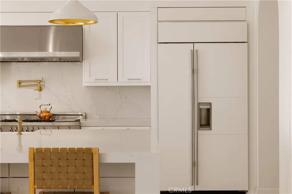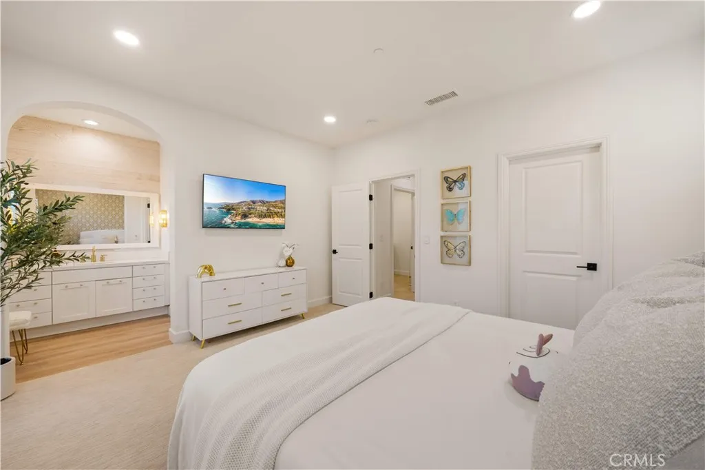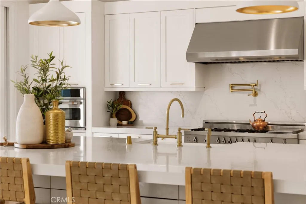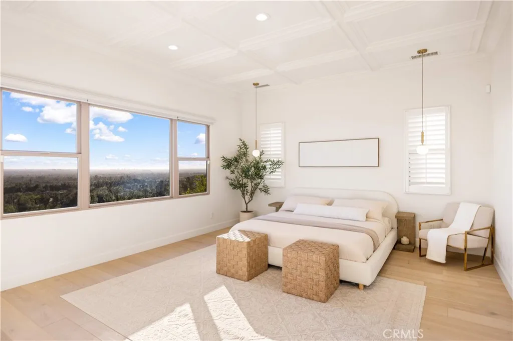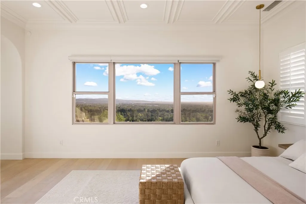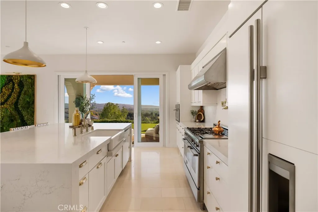 Welcome to this beautiful view home situated at the highest point of the gated Lambert Ranch community in Irvine. With the rare perk of no Mello-Roos, this property offers incredible panoramic vistas of daily sunsets, twinkling city lights, Catalina Island, the Palos Verdes Peninsula, and even the Disneyland fireworks. It's an expansive view that truly rivals and arguably surpasses Orchard Hills Summit. The property greets you with a private stone courtyard featuring relaxing water features and a highly convenient detached guest casita, perfect for visitors or a quiet home office. Inside, the 4-bedroom, 4.5-bathroom layout is open, inviting, and thoughtfully designed. A spacious great room and formal dining area flow seamlessly into a kitchen built for both everyday living and easy entertaining. The kitchen features a large center island, a 6-burner Bertazzoni range, imported German pendant lighting, a walk-in pantry, and a dedicated butlers pantry complete with dual wine fridges. French doors open to a fantastic backyard tailored for enjoying the incredible scenery. Out here, you'll find a covered loggia with a gas fireplace and TV setup, a stone patio with a built-in BBQ, a firepit, and plenty of space to relax. Fully wired with an integrated indoor/outdoor speaker system, it's the perfect spot to hang out and take in the surroundings. Upstairs, the primary suite serves as a relaxing retreat, complete with a spa-like bathroom offering a soaking tub, dual vanities, a separate shower, and a large walk-in closet. Two additional en-suite bedrooms round out the second level, g