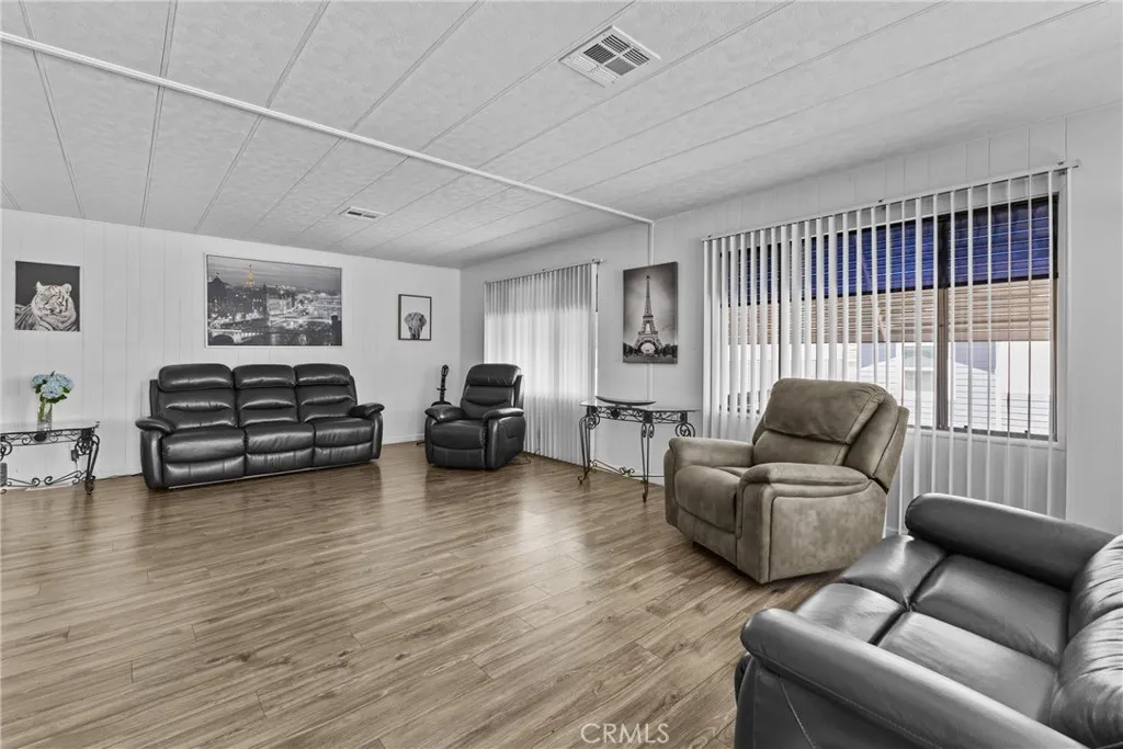 Welcome to this beautifully maintained mobile home in an award-winning 55+ community designed for active seniors who want lifestyle, convenience, and comfort all in one. Step inside to find a move-in ready 2-bedroom, 2-bath home with an enclosed California room, offering extra space to relax, entertain, or unwind. The generous living room flows seamlessly with updated flooring throughout, creating a clean and inviting feel the moment you walk in. The kitchen is both functional and charming, featuring plenty of storage and a built-in range. The primary bedroom offers privacy with its own enclosed bathroom, while the secondary bedroom is spacious and conveniently located near the second full bath in the hallway. Enjoy your morning coffee on the front porch, host weekend BBQs in the private backyard space perfect for grilling and gathering, and take advantage of the oversized drivewaywith plenty of room for a large truck. And the lifestyle? Its everything. This vibrant community offers activities for every interestshuffleboard, outdoor swimming, bingo nights, a library, crafts, cards, and indoor exercise options, within walking distance to a dog park also nearby Kaiser Permanent Hospital and Riverwalk area, perfectly located near shopping, dining, and easy access to the 91 freeway, this is truly location, location, location.If youve been waiting for something affordable, low-maintenance, and move-in ready, this is it. Dont miss your opportunityschedule your private showing today.