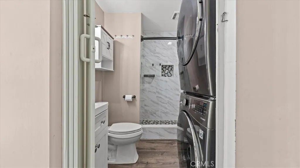 Great opportunity to own a single-level condo in Pomona featuring 2 bedrooms and 2 bathrooms. The living room flows into the kitchen with white cabinets, a stylish backsplash, and plenty of storage, opening to the dining area with extra cabinets, a ceiling fan, and a sliding door leading to the backyard. The primary bedroom offers a spacious layout with direct backyard access, a tile shower, and in-unit laundry for added convenience. The second bedroom is also well-sized, and the hallway bathroom features a shower/tub combination. Enjoy a private backyard with space to relax or entertain. Additional highlights include a detached 2-car garage, central A/C (approx. 4 years old), and a newer tankless water heater. HOA includes water, trash, and common area maintenance. Conveniently located near schools, shopping, and easy freeway access.
