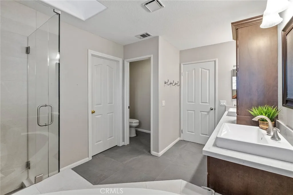 Welcome to the Renaissance of Eagle Ranch in Victorvillewhere space, comfort, and entertainment come together. Situated on one of the larger lots in the neighborhood, this home is designed for both relaxation and unforgettable gatherings. Step into your private backyard oasis, featuring a sparkling solar-heated pool with a diving board, a half basketball court for active fun, and a cozy fire pit perfect for evenings under the stars. With plenty of open space to entertain, host, and enjoy, this property offers a rare combination of size and lifestyle amenities that truly set it apart. Whether you're planning weekend get-togethers or simply enjoying a quiet night at home, this backyard delivers. Inside, the home offers 4 bedrooms and 3 full bathrooms. The spacious primary suite is a true retreat, featuring a large bathroom with dual sinks, new cabinetry, a soaking tub, a separate shower, and a walk-in closet. The primary bedroom also boasts a double-sided fireplace and a charming reading nook surrounded by windows. Upstairs, the secondary bathroom includes dual sinks and upgraded cabinetry. Downstairs, you'll enjoy multiple family and dining areas with views of the beautifully crafted staircase, creating an inviting and open atmosphere. The recently remodeled kitchen is thoughtfully designed with built-in pantries, soft-close drawers, pull-out trash storage, dedicated pots and pans drawers, and instant hot water at the sinkeverything you need to prepare and enjoy home-cooked meals. Additional features include upgraded Anlin windows for enhanced energy efficiency, as well as s