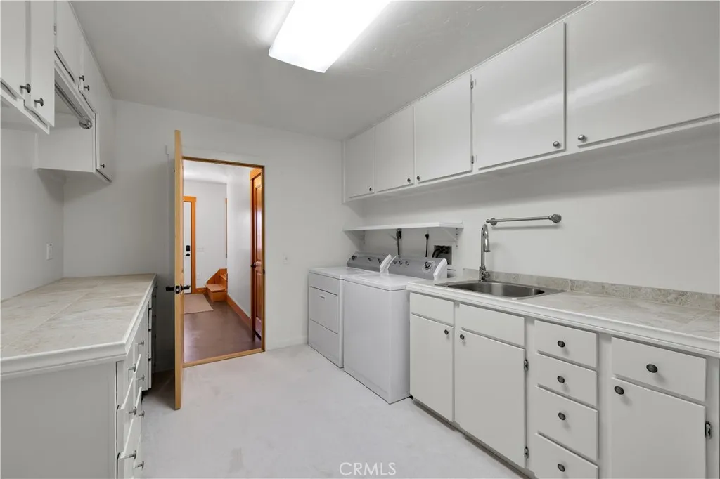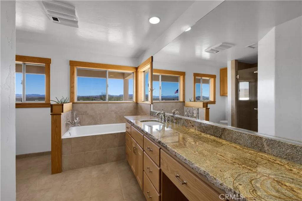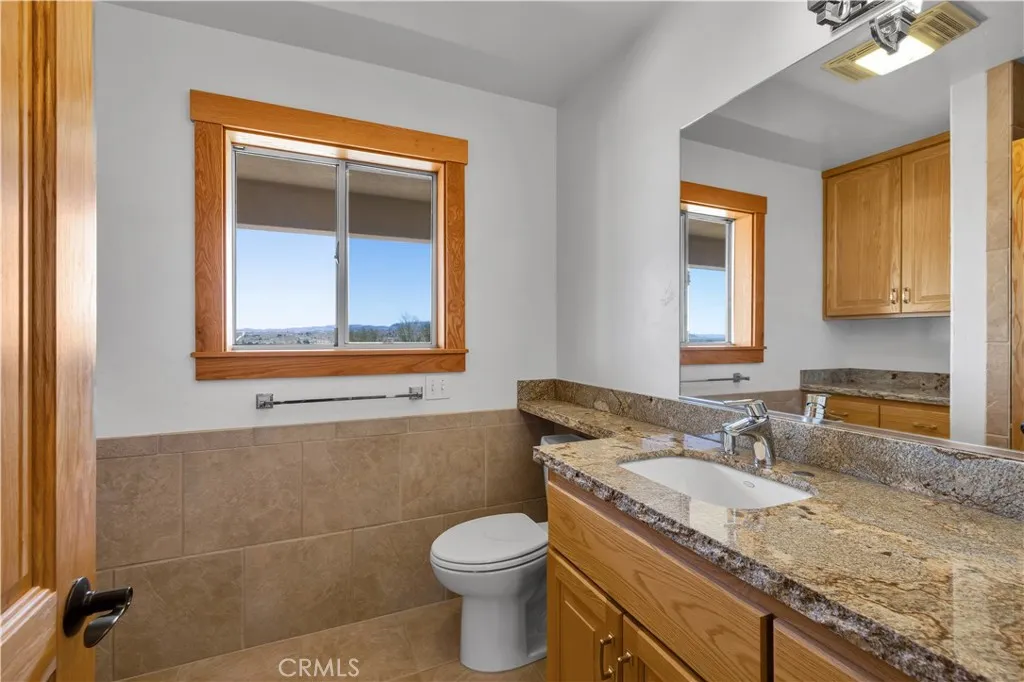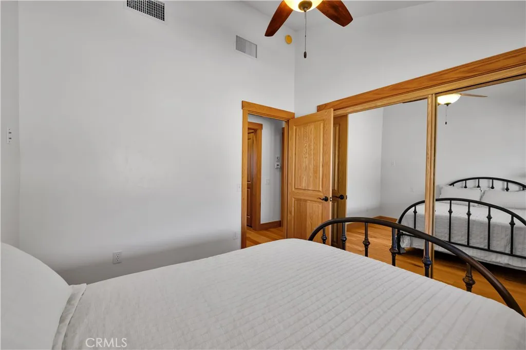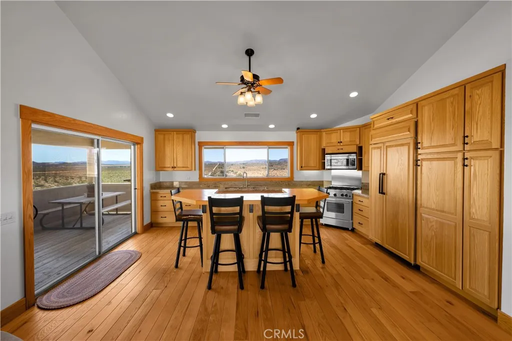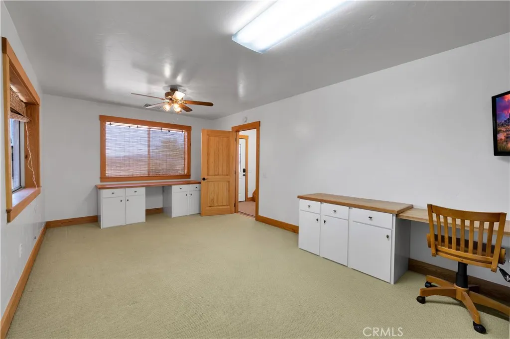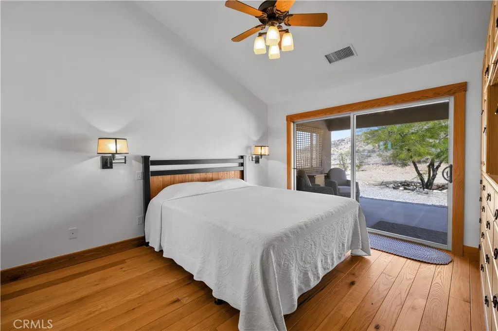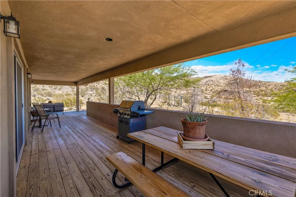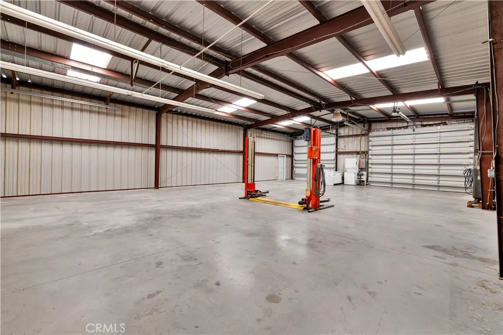 Large two-story main home, additional cabin, and a 2,400 sq ft workshop all on a fenced 5-acre parcel. This unique property is the last home on the street, backed directly against the mountain, offering incredible panoramic views overlooking all of Landers and unmatched privacy. The 2012 custom-built two-story main home features high-end finishes throughout, including real wood flooring, custom oak cabinetry, and laundry rooms on both levels. The upper level showcases vaulted ceilings and an open-concept layout, with a spacious kitchen featuring raw-edge granite countertops, abundant cabinetry, and ample workspace. The living room includes a wood stove and multiple sliders leading to both the front wraparound balcony and back patio. Bedrooms are generously sized, and the primary suite offers a massive walk-in closet, patio access, and a beautifully finished bathroom with soaking tub and walk-in shower. A bedroom on the lower level and a fully finished two-car garage add to the flexibility. The separate cabin provides excellent additional living space for guests, featuring an open layout, well-preserved retro charm, beautiful views, its own bathroom with walk-in shower, front porch, and a cross-fenced yard. The 2,400 sq ft metal workshop is a standout feature, equipped with three RV-height roll-up doors, power throughout with multiple 220 outlets, laundry hookups, a car lift, and custom fabrication tables with built-in storageideal for hobbyists, contractors, or business use. Additional features include a Connex storage container and full RV hookups. Properties offering this