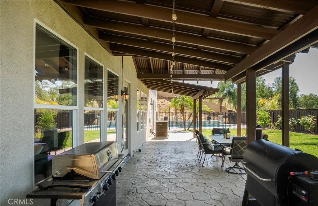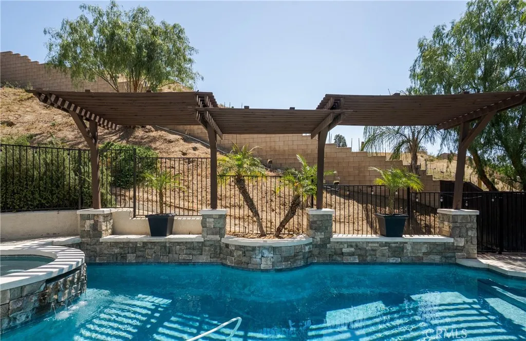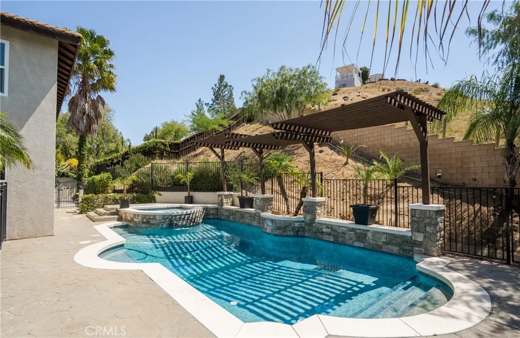 Located in the prestigious Grizzly Ridge Estates in Murrieta, this turnkey executive pool home is set at the end of a quiet cul-de-sac, offering exceptional privacy, expansive living, and sweeping views of the Santa Rosa Plateau. From the moment you arrive, a gated archway and beautifully landscaped courtyard create a grand sense of arrival, leading into a striking entry with soaring vaulted ceilings. Inside, the home opens to a thoughtfully designed layout featuring a formal living room, elegant dining room, private office, and dual staircases, along with a spacious loft and multiple areas for work or study. At the center of the home, the kitchen is designed for both function and gathering, offering granite countertops, white cabinetry, stainless steel appliances, a dining area, and bar seating. It opens seamlessly to the family room with a fireplace and built-in shelving, creating a warm and connected living space. The main level also includes a private bedroom with its own bathroom, ideal for guests or extended living, along with a laundry room and powder room. Make your way upstairs to the primary suite, offering a private bathroom and walk-in closet. The upper level also includes three additional bedrooms, a full bathroom, a spacious loft, and a dedicated study or workspace area. The backyard is designed as a private retreat, featuring a pool, spa, covered patio, and landscaped groundsideal for both relaxing and entertaining while taking in the surrounding views. Additional features include plantation shutters, crown molding, wainscoting, updated lighting, window treat