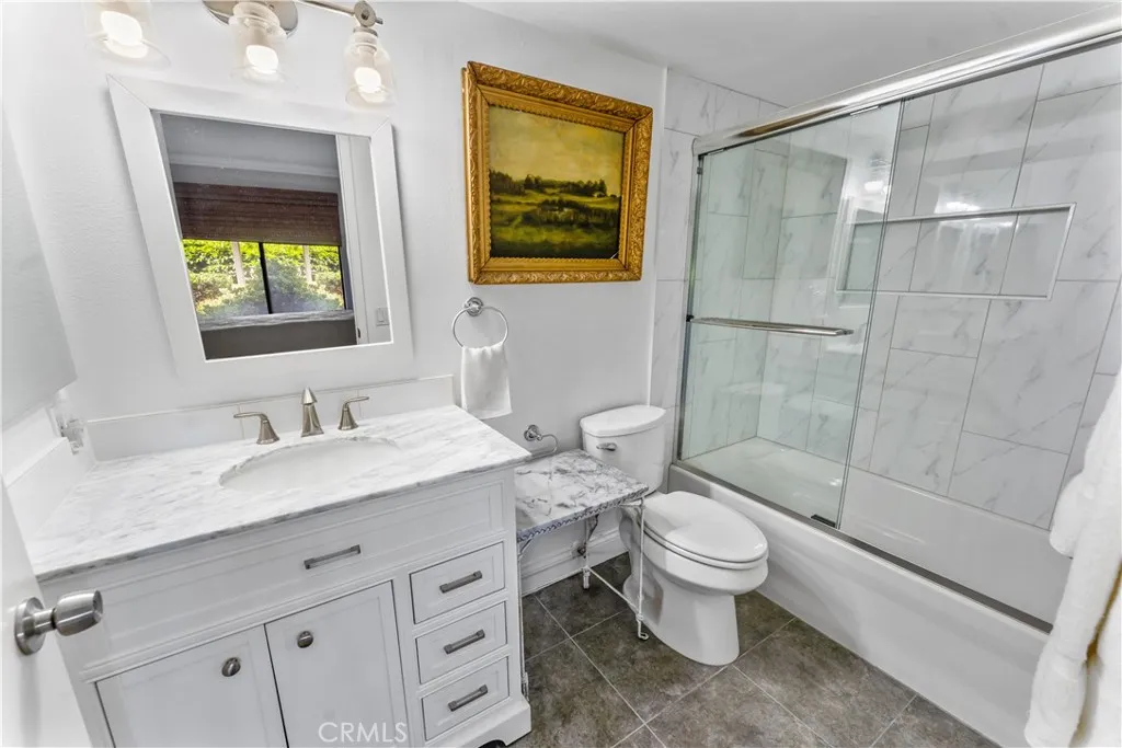 Theres something so special about a home that doesnt ask you to compromise; it simply invites you in and lets life unfold with ease. Tucked into a serene corner of Rancho San Joaquin, this rare ground-floor residence feels less like a condo and more like a hidden retreat. No stairs leading you to the front door, just a gentle welcome home each time you arrive. Inside, the home opens up in a way that feels both airy and intimate. High ceilings stretch above the living and dining spaces, giving the home a sense of volume and calm. The remodeled kitchen anchors it all with timeless design, white shaker cabinetry, quartz countertops, and stainless-steel appliances that make everyday living feel just a bit more elevated. Just off the kitchen, you have a charming breakfast nook, which is currently being used as an exercise area. With two spacious bedrooms, each with its own beautifully updated ensuite bath, theres a sense of privacy and comfort woven throughout. Marble countertops and thoughtfully selected tile create a spa-like feel, the kind of spaces you look forward to retreating to at the end of the day. And then theres the outdoor living, two patios, each offering its own moment, one for dining under the open sky, another for quiet reflection. Practicality meets rarity with a two-car garage, complemented by a private driveway that accommodates two additional vehicles, an uncommon and highly sought-after feature that makes hosting and everyday living feel effortless. Beyond the home itself, Rancho San Joaquin offers a lifestyle that feels both active and serene, with a pool