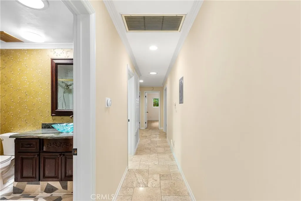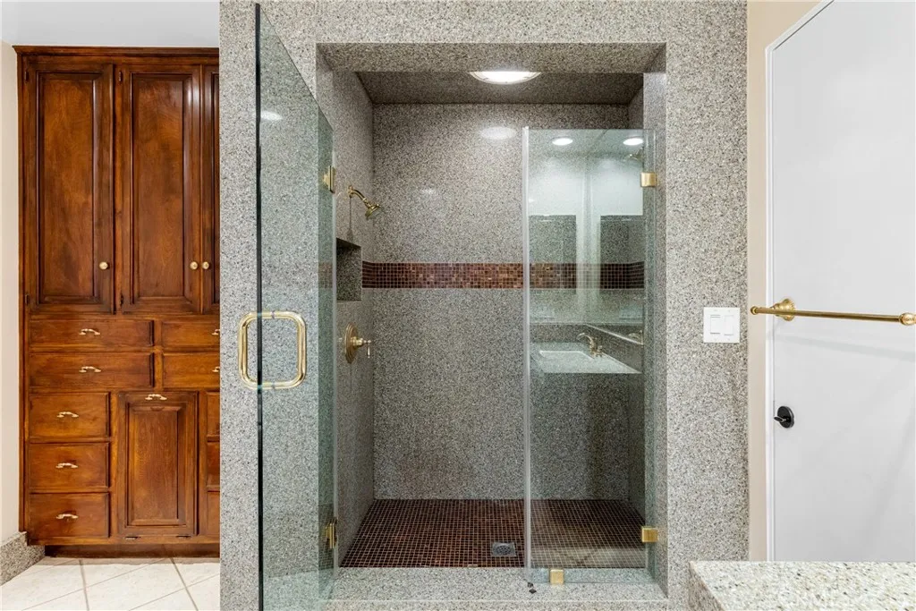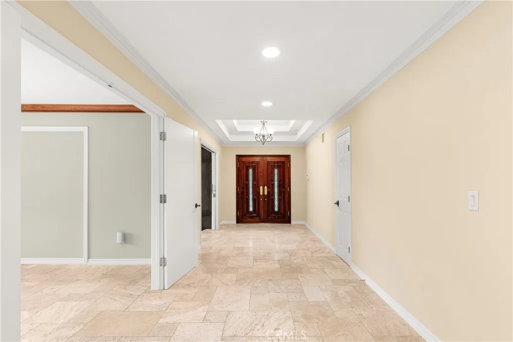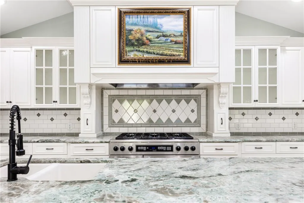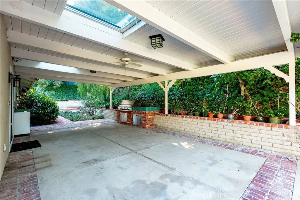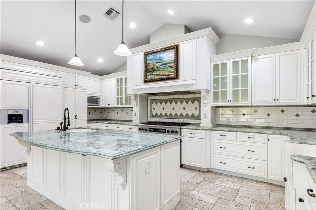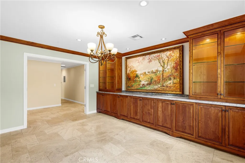 Set above the street on an exclusive cul-de-sac in Encino south, is this remodeled 4BR Traditional gem. Spanning a lot incorporating over 17,000 sq ft per assessor, this amazing property is tailor made for entertaining. A large and bright foyer/gallery, ideal for art, greets you as you enter, and leads to a spacious step-down living room/media room, including wood floors, a built-in entertainment unit, and a picturesque French window. The oversized formal dining room features custom wood crown moldings and a built-in china cabinet with elegant wood and beveled-glass accents. The focal point of the home is the dramatic state-of-the-art skylit kitchen/family room, highlighted by a striking granite center island, an Italian tile backsplash, hand-done cabinetry, 2 sinks, and a Dacor commercial 6-burner range. The family room, overlooking the pool, has a vaulted ceiling, travertine floors, a marble fireplace, and maple wood-built ins. The luxurious primary suite provides dual vanities, a granite and mosaic shower, a spa tub and walk-in closet. All the secondary bedrooms are abundant in size and have mirrored wardrobes. The private and expansive back yard is comprised of a sparkling brick-laced Pebble Tec pool, green, multiple patios, and hill views. An added bonus is the 3-car garage with an array of built-ins. Minutes to Ventura Blvd and its many vibrant dining and shopping options.