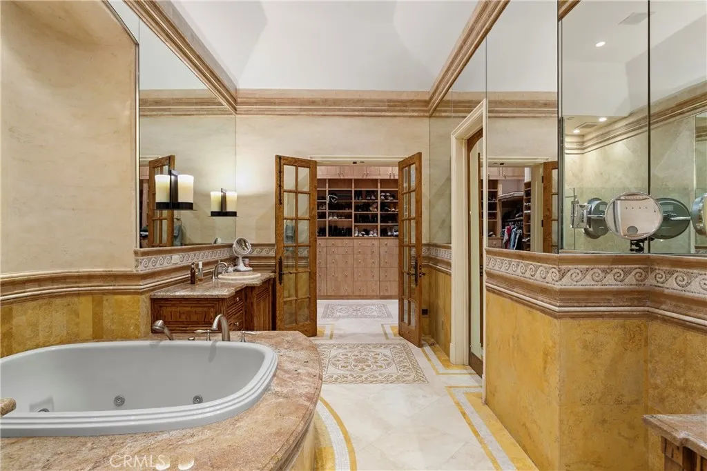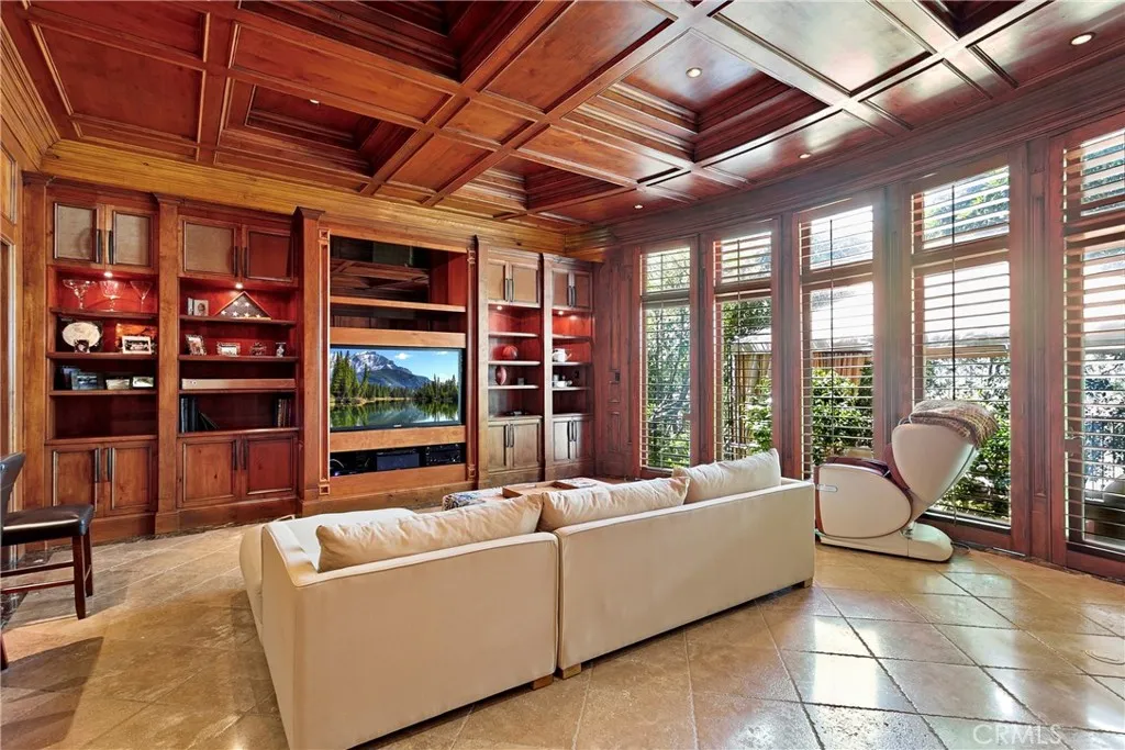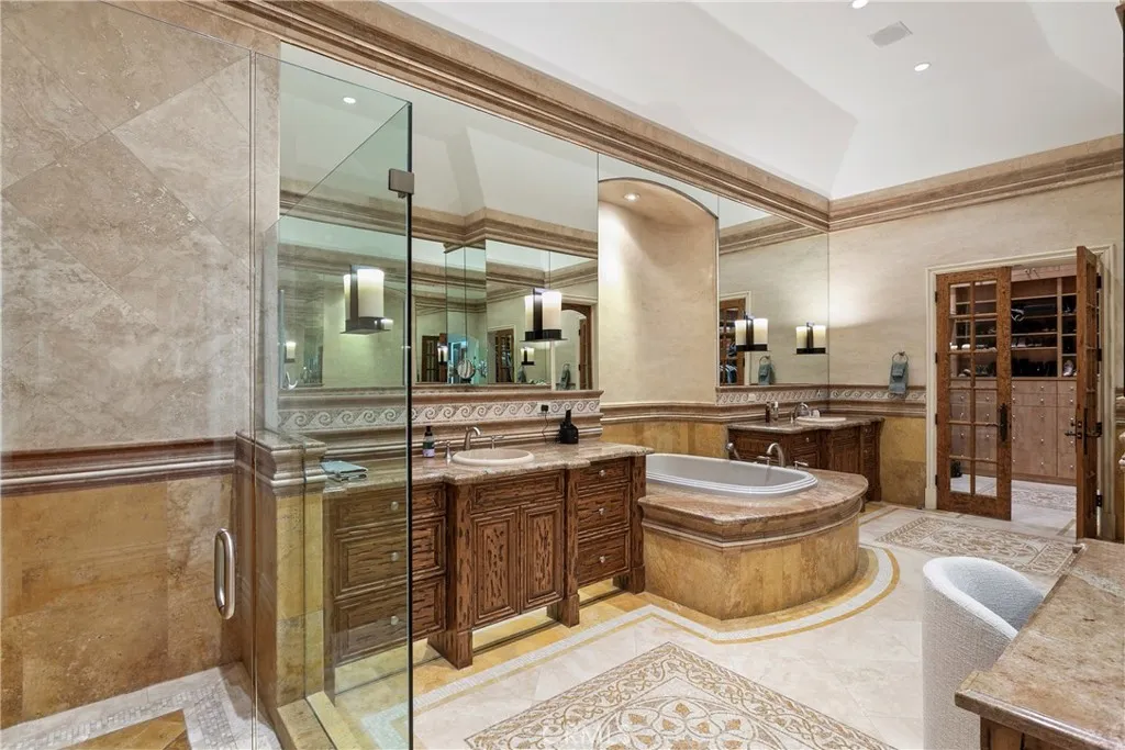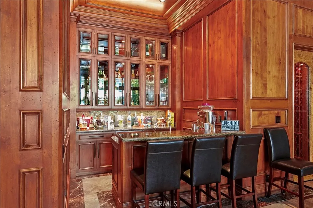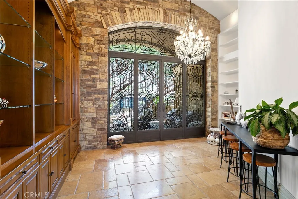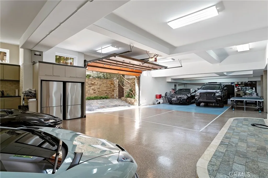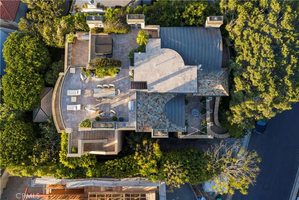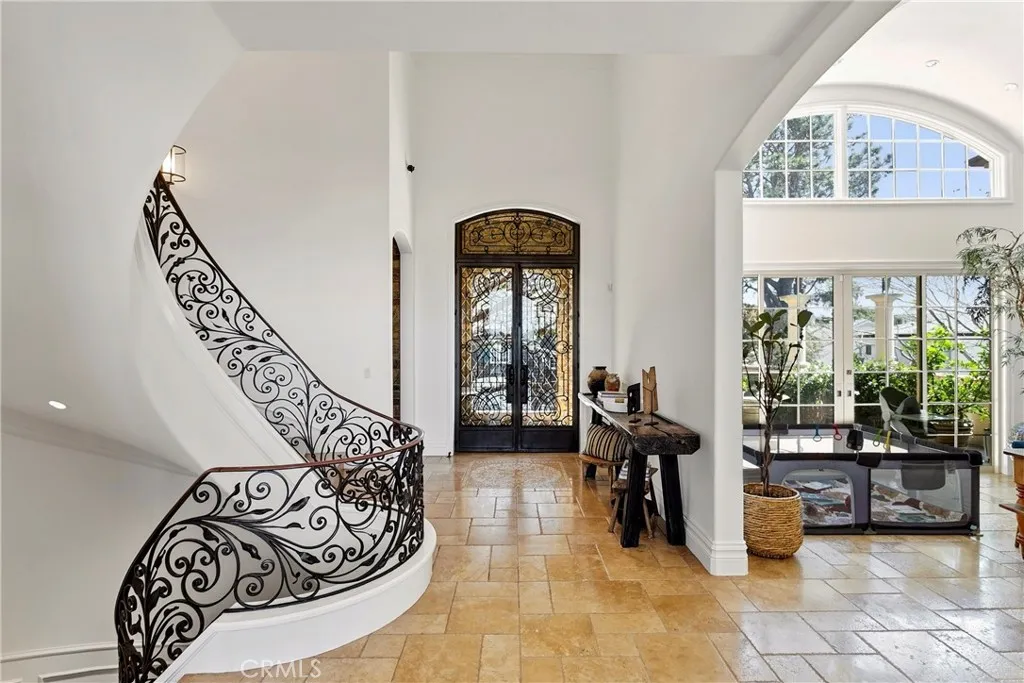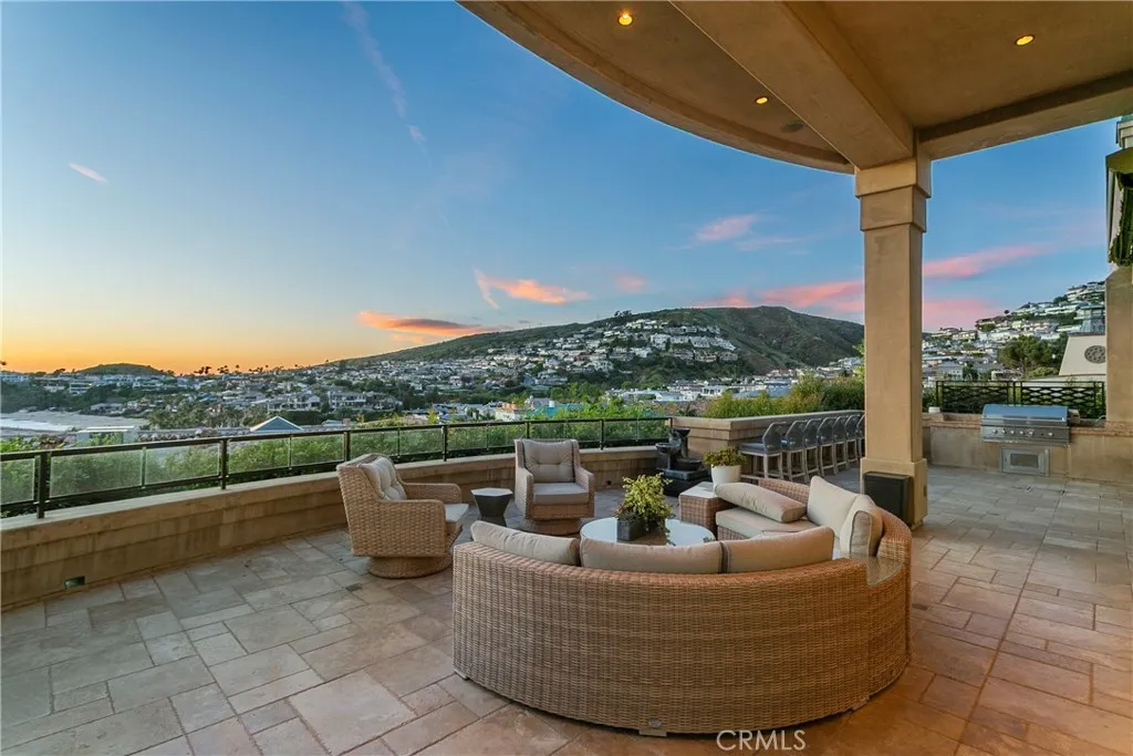 A residence of this caliber is rarely available. Set above one of Laguna Beachs most dramatic stretches of coastline, this custom estate offers sweeping views of the Pacific, Catalina Island, and the rugged shoreline. Surrounded by the historic Smithcliffs pine trees, the property provides privacy and a unique sense of place. The architecture blends classic and modern influences, with interiors designed to connect seamlessly to terraces, gardens, and sun-filled outdoor spaces. The main level supports both entertaining and everyday living, beginning with a striking foyer and floating spiral staircase. The great room opens through large sliding doors to the main ocean-facing terrace. The kitchen features custom wood cabinetry, an oversized island, walk-in pantry, and professional-grade appliances from Wolf, Fisher & Paykel, Sub-Zero, and Miele. A formal dining room with a cross-vaulted ceiling opens to the outdoors through newer Fleetwood French doors. Approximately 7,119 square feet, the home includes four ensuite bedrooms and nine baths. The privately positioned primary suite opens to a meditation garden and includes two walk-in closets and a jetted tub. Additional features include handcrafted finishes, custom mosaics, wood and stone flooring, three fireplaces, multiple wet bars, a temperature-controlled wine cellar, upgraded AV system, newer generator, and an elevator. The lower level showcases an exceptional 11-car garagean uncommon amenity in coastal Laguna Beachideal for collectors or those seeking a display gallery or workshop. The rooftop deck offers a private retreat