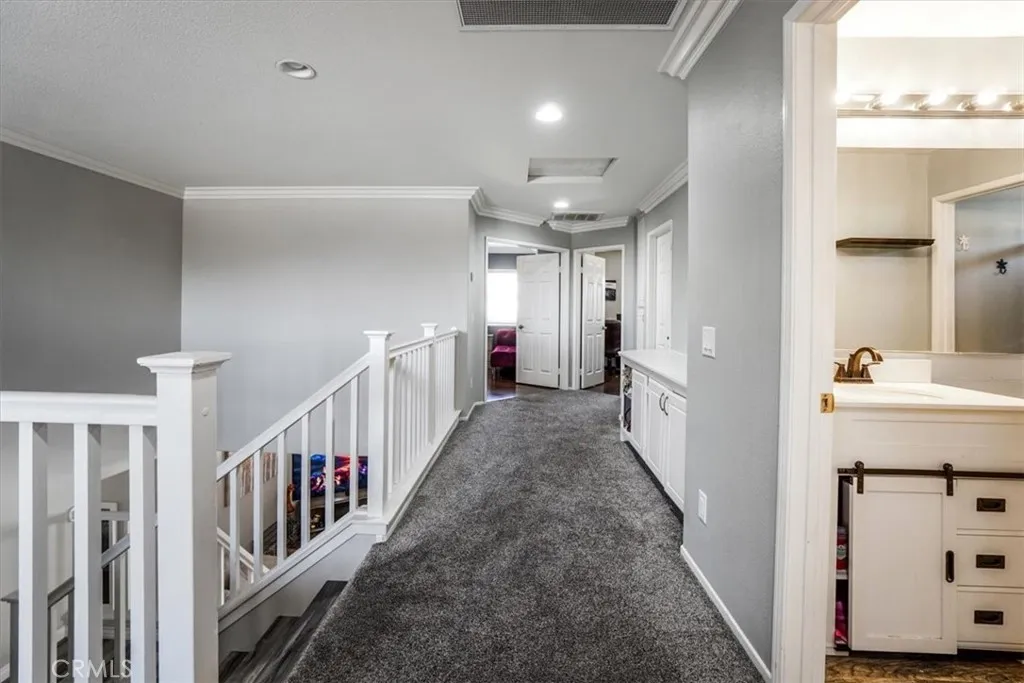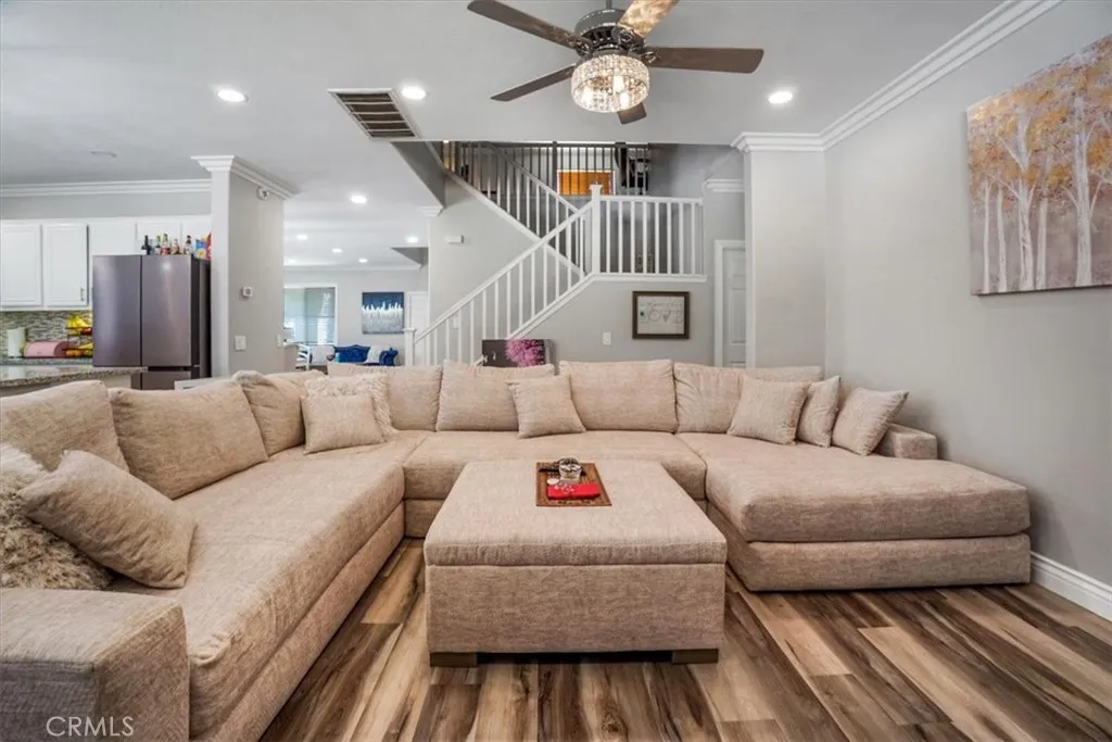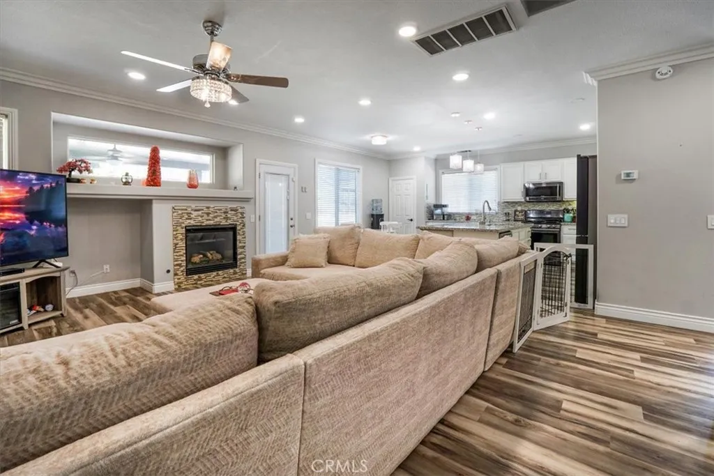 This home truly checks every box and then goes above and beyond. From the moment you walk in, you're greeted with an open, airy layout designed for both comfort and style, highlighted by beautiful laminate flooring and elegant crown molding throughout. The heart of the home flows seamlessly into a spacious living area, perfect for entertaining or relaxing, while modern upgrades like a whole house fan and brand-new air conditioning units keep everything comfortable year-round. Step outside and you'll find your own private retreat-complete with a covered back patio featuring ceiling fans, a relaxing spa, and mature fruit trees that bring both beauty and function to the space. The oversized main bedroom offers a true escape, with plenty of room to unwind, with a open bathroom suite that offers dual sinks, vanity area, soaking tub and walk-in shower. A large loft provides extra living space ideal for a game room, office, or additional lounge area. This home is also built for the future, featuring a 3-car garage equipped with a Tesla charging station and an additional EV charging setup. Water quality is top-tier with a whole house water softener and under-sink filtration system already in place. Every detail has been thoughtfully designed to combine luxury, efficiency, and everyday ease-making this not just a house, but a place you'll love coming home to. Elementary and brand new Junior High within walking distance.